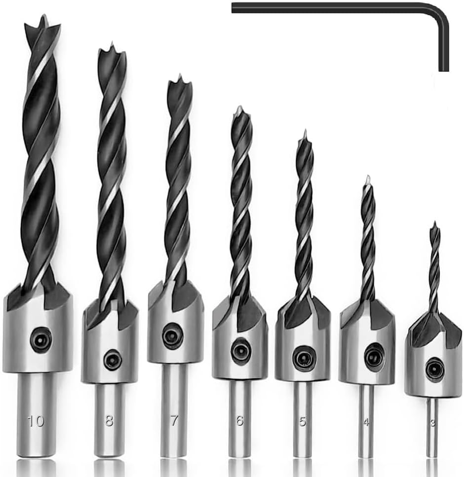 Fixinus 7 pieces Countersink Drill Bits Set, 3mm-10mm Counter Sink Bit for Wood High Speed Steel, Woodworking Carpentry Reamer with Hex Key Wrench