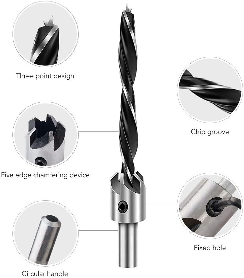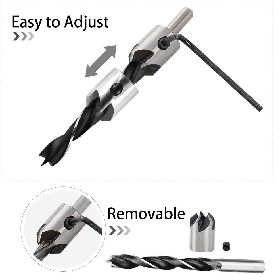 • 【Removable & Adjustable】Use the hex wrench to change or dismantle the countersink cutterhead and the five-flutes chamfer.