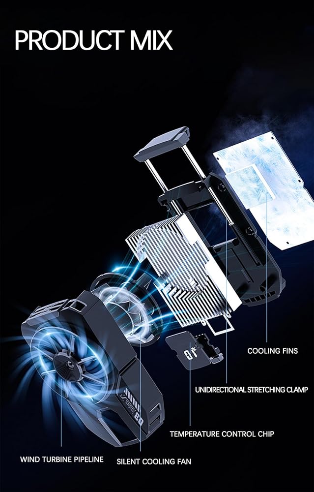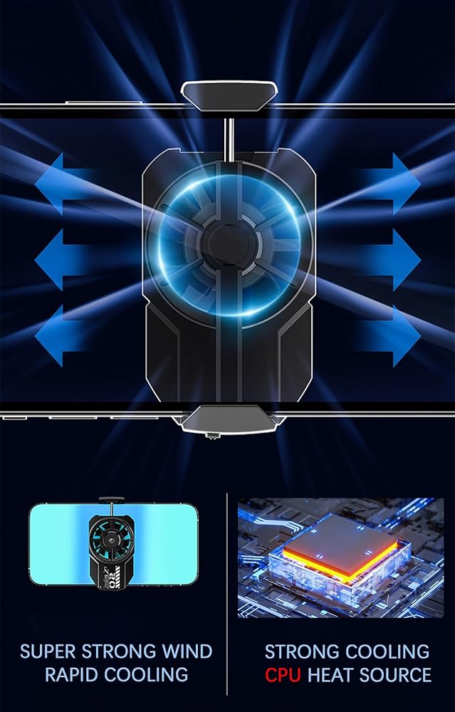 【 73.4 درجة فهرنهايت تنخفض خلال دقيقة واحدة 】يستخدم مبرد الهاتف هذا رقائق تبريد احترافية من TEC ووسادات سيليكون ساخنة. مبرد الهاتف مزود بأعمدة تبريد وتروس عالية السرعة، مما يقلل من درجة حرارة الهاتف بمقدار 73.4 درجة فهرنهايت