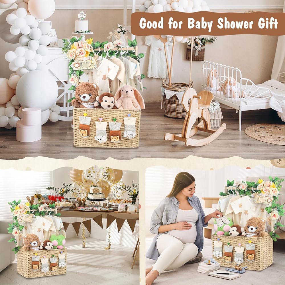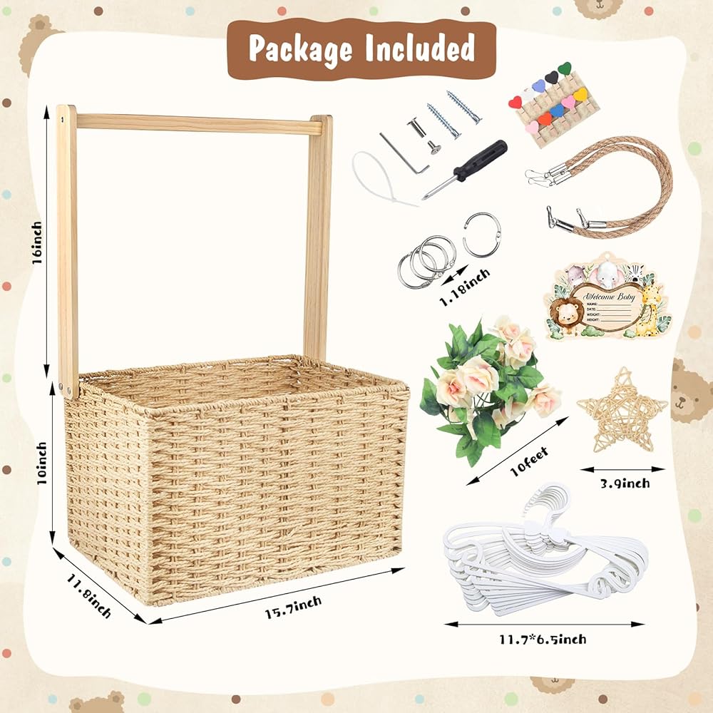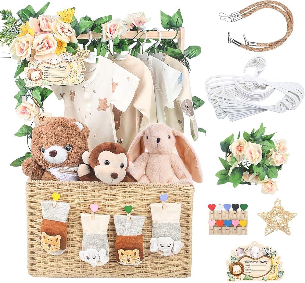 • تطابق ما تريد: المجموعة مجهزة بشماعات وقطع خشبية للمعلومات وإكسسوارات زخرفية. يمكنك استخدام خيالك لتزيين سلة هدايا استحمام الطفل هذه بأي طريقة فريدة وذات مغزى بالنسبة لك.