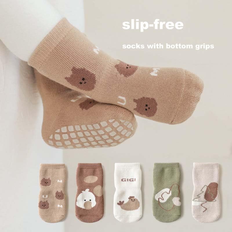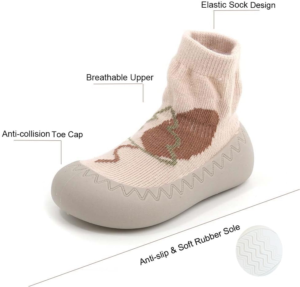 فم جورب مرن، سهل الارتداء والخلع. نعل مطاطي مضاد للانزلاق يمنع الطفل من الانزلاق.
