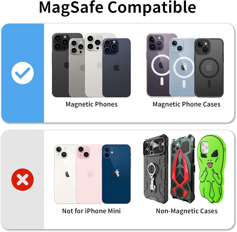 توافق MagSafe: تتوافق محفظة iphone magsafe هذه مع iPhone 15/15Pro/15 Plus/15 Pro Max/ 14 Pro Max/14 Plus/14 Pro/14، iPhone 13 Pro Max/13 Pro/13، iPhone 12/12 Pro/ 12 ماكس.