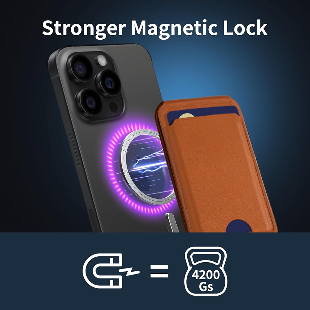قفل مغناطيسي أقوى: محفظة VIL magsafe المزودة بـ 20+1 مغناطيس قوي أقوى 6 مرات من العلامة التجارية الرسمية. يصل وزنه إلى 4200 جيجا ويضمن بقاء حامل المحفظة متصلاً بشكل آمن بجهاز iPhone أو الحافظة المتوافقة مع MagSafe.