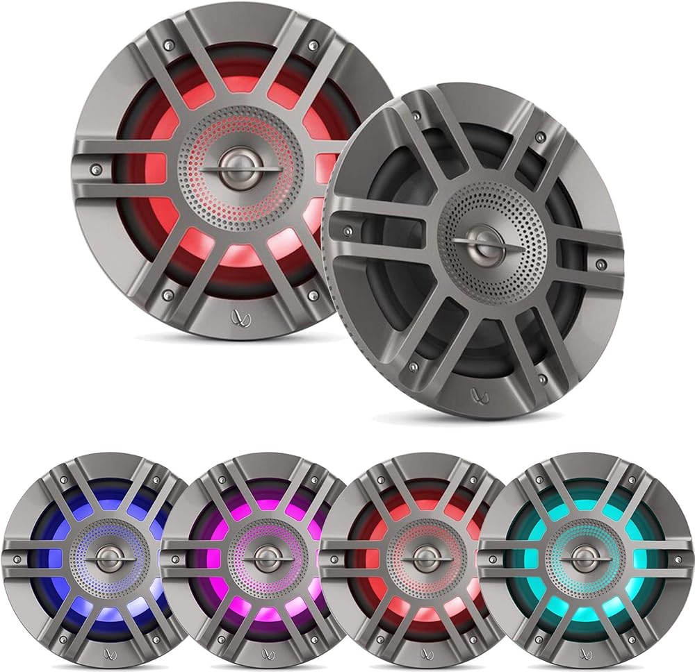 • مكبر الصوت: لن توفر مكبرات الصوت Infinity KAPPA 6125M مقاس 6.5 بوصة صوتًا رائعًا فحسب، بل ستمنح نظامك أيضًا لمسة بصرية مثيرة للإعجاب مع إضاءة RGB LED متعددة الألوان. تعمل هذه السماعات على ضخ 300 واط من الطاقة القصوى و100 واط من طاقة RMS، تأكد من ضخ الصوت الذي تريده. إن البناء المتين من الدرجة البحرية يجعل هذه السماعات مثالية لتطبيقات البيئة المفتوحة!