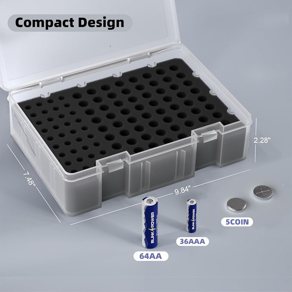 منظم بطارية مدمج: يحمل 56 AA، 29 AAA. اقلب البطاريات القديمة رأسًا على عقب لتمييز البطاريات الجديدة، ومساحة كبيرة كافية لتخزينها في نفس الوقت.