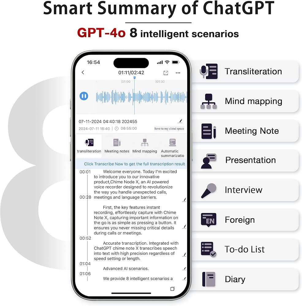 • وظيفة الذكاء الاصطناعي: نموذج لغة كبير للتدريب الذاتي، يتعرف بوضوح على 107 لغة، ويحول الصوت إلى نص، ومترجم، ووظيفة غرفة الدردشة. الوصول إلى نموذج الذكاء الاصطناعي المفتوح، ودعم ملخص النص الصوتي، والخريطة الذهنية، والملخص، وقائمة المهام، وتنظيم الكلام، والمساعدة في تعلم اللغة الأجنبية، والمقابلة، والمذكرات.