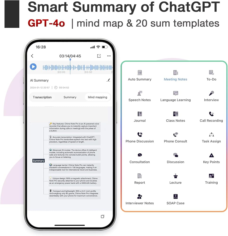 AI Voice Recorder Call Chatgpt، مسجل صوت رقمي يدعم النسخ الصوتي المجاني وملخص النص، التحكم في التطبيق، 107 لغة، تسجيل 60 ساعة، ينطبق على المحاضرة والاجتماع والفصل والمقابلة وما إلى ذلك
