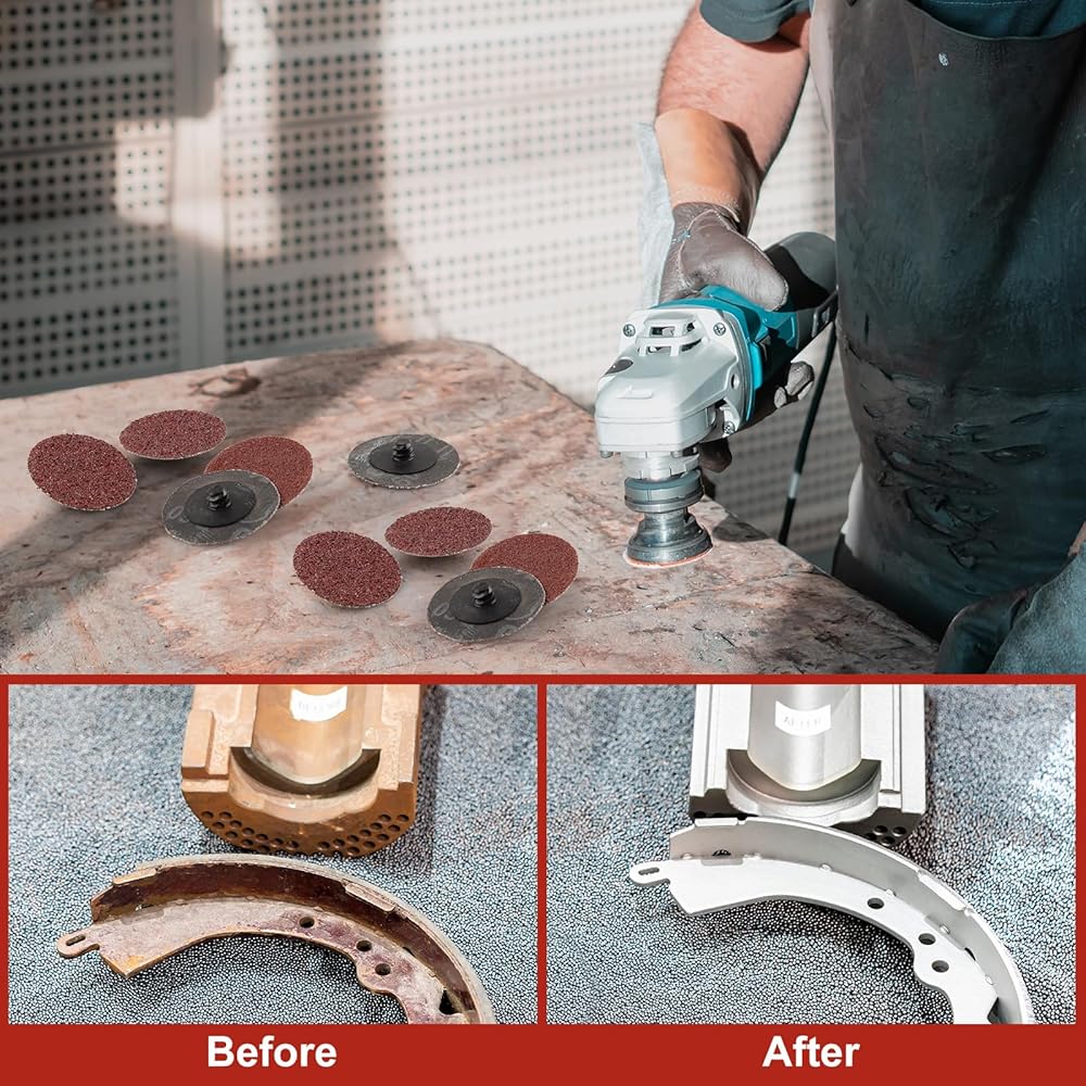 Premium Material: Made with premium aluminum oxide abrasive, the roll lock sanding disc features active grinding agents and heat-resistant anti-clogging coatings, offers excellent sanding and polishing, ensures long-lasting durability and wear resistance