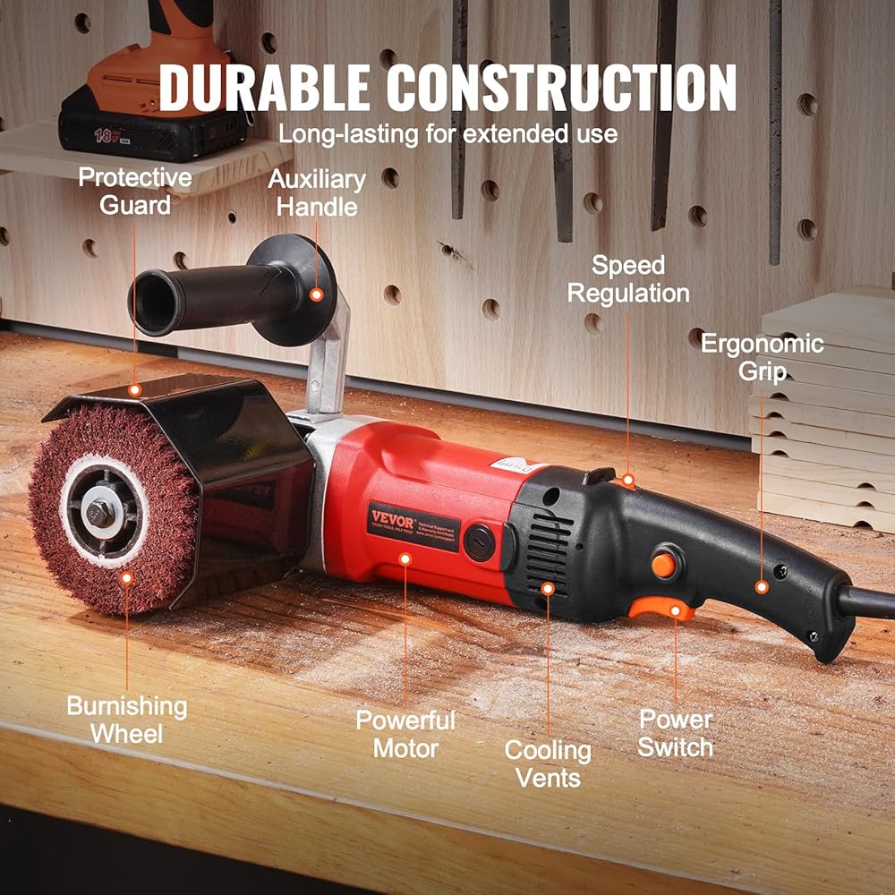 أداء قوي: تتميز ماكينة التلميع VEVOR بمحرك قوي بقدرة 1200 واط، وتوفر قوة فائقة لأعمال التلميع المعقدة. يضمن محرك السلك النحاسي المقاوم لدرجات الحرارة العالية والحماية من التحميل الزائد متانة موثوقة