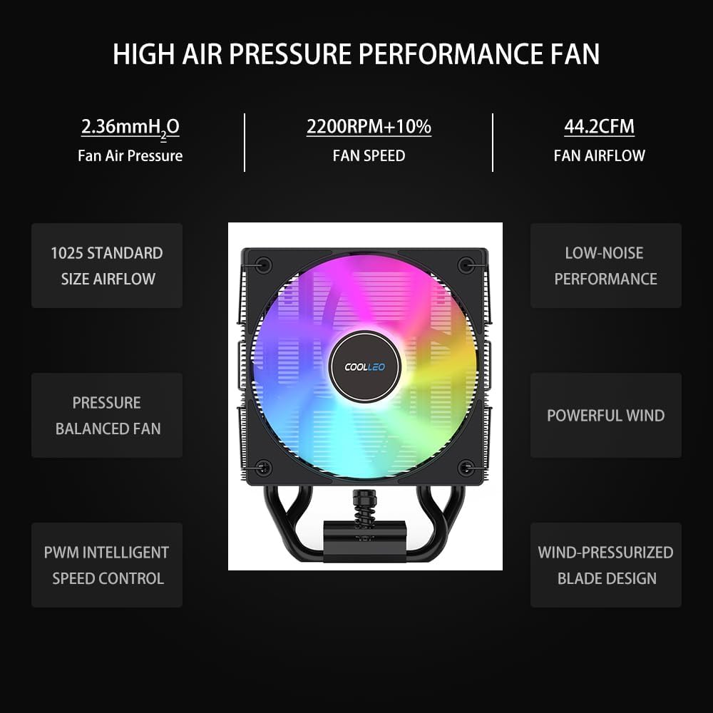 【تصميم مبتكر】: تم تصميم مبرد الهواء الرقمي COOLLEO B40S ARGB بعملية الاتصال المباشر للأنابيب الحرارية، مما يوفر أنابيب حرارة محسنة عالية الكفاءة مضادة للجاذبية 4 مم، وعرض مرئي لدرجة حرارة وحدة المعالجة المركزية، واستهلاك طاقة تبديد الحرارة 220 وات، وسرعة المروحة 2200 دورة في الدقيقة ± 10%، تحكم ذكي في درجة الحرارة PWM، ومحامل HDB لمتانة طويلة الأمد، وحل تأثير الجاذبية على تبديد الحرارة. إن محمل HDB متين ويحل تأثير الجاذبية على تبديد الحرارة، ويكون الاتصال أكثر إحكامًا ونقل الحرارة أكثر مباشرة، مما يساعد على الحفاظ على التشغيل المستقر والموثوق.