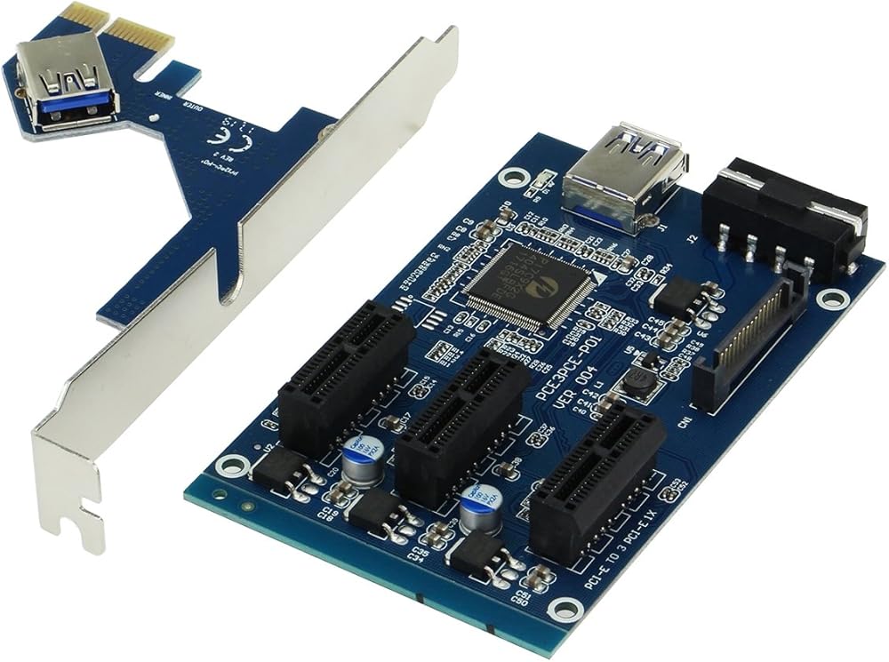 1-slot PCI-E 1X to 3 slot 1X riser card with high speed USB 3.0 cable.