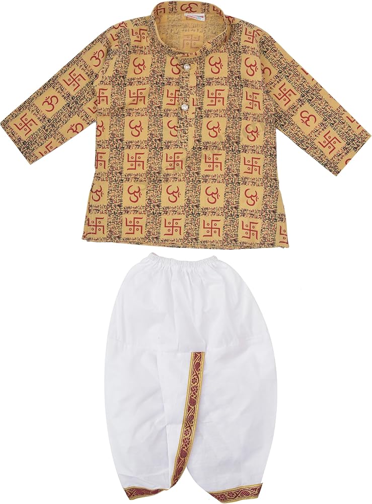 • Traditional Dhoti Style: Classic Indian design that adds an authentic touch to your baby's special occasion outfit.