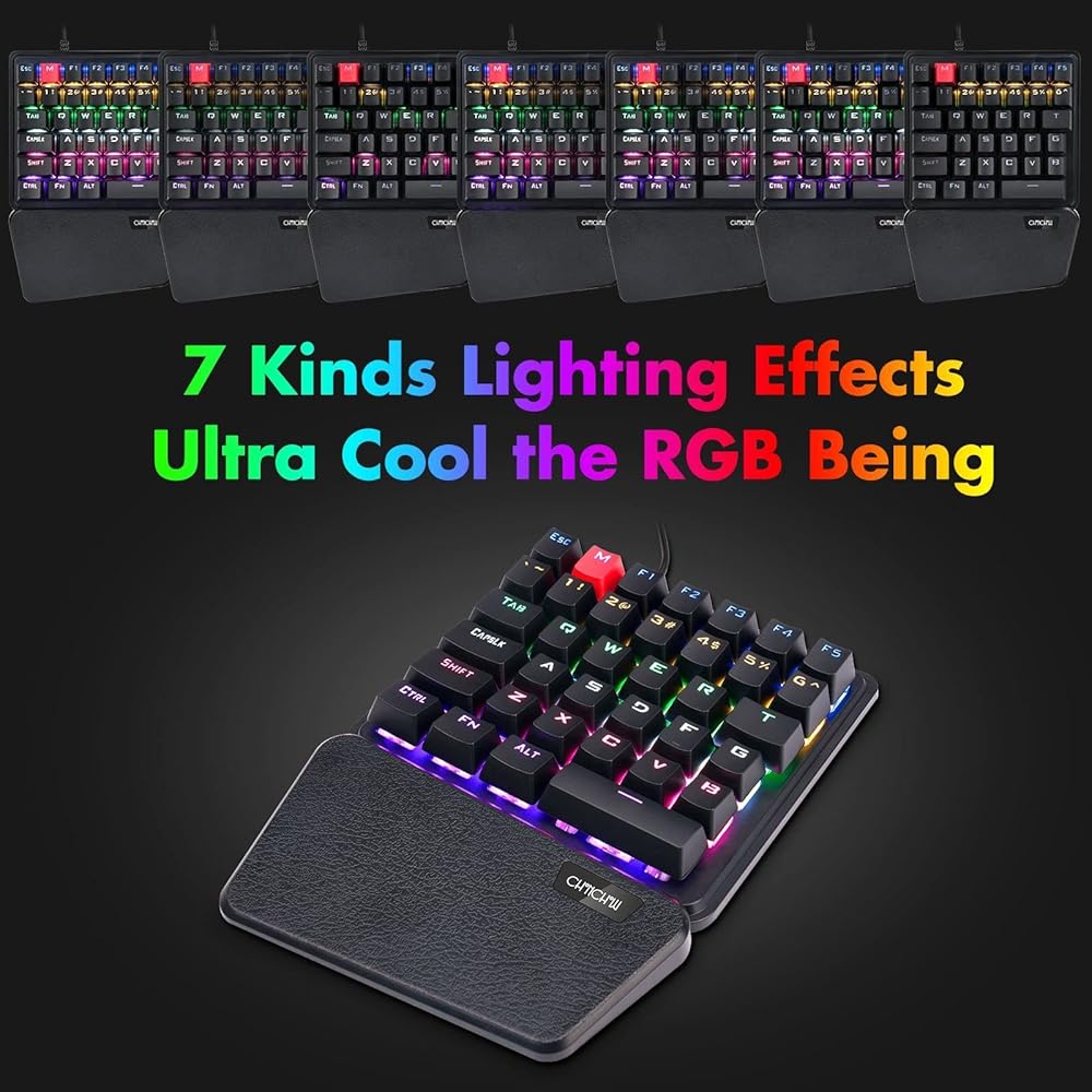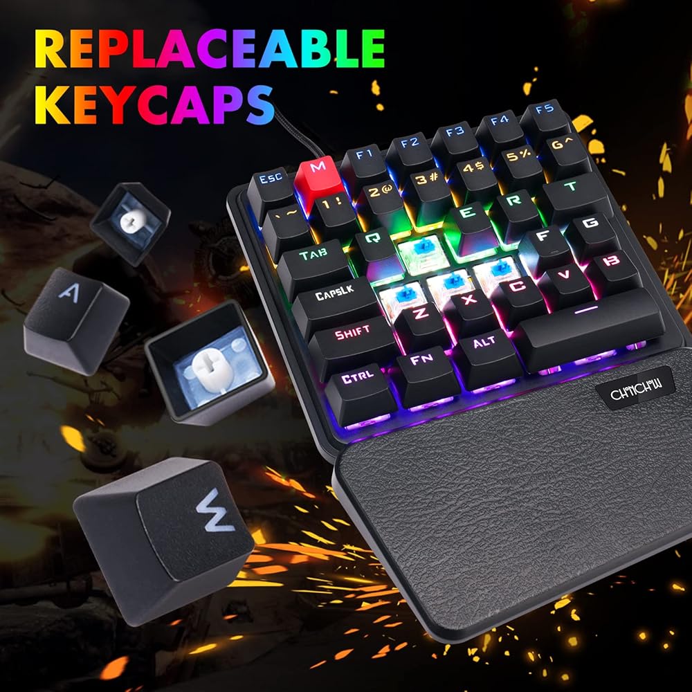 لمس صغير ونقر -- قم بقطع المفاتيح في الغالب على لوحة المفاتيح العادية، والتخلص من الانطباع الكبير والثقيل، لوحة مفاتيح الألعاب بيد واحدة تحتوي فقط على 36 مفتاحًا مفيدًا للألعاب. لا داعي للقلق من التعامل مع الأخطاء أثناء اللعب، المفاتيح الزرقاء الميكانيكية الكلاسيكية نقرة مسموعة مع ردود فعل لمسية واضحة للوحة مفاتيح الألعاب CHONCHOW بيد واحدة تدعمك للتحكم في ساحة المعركة وأن تكون أفضل لاعب.