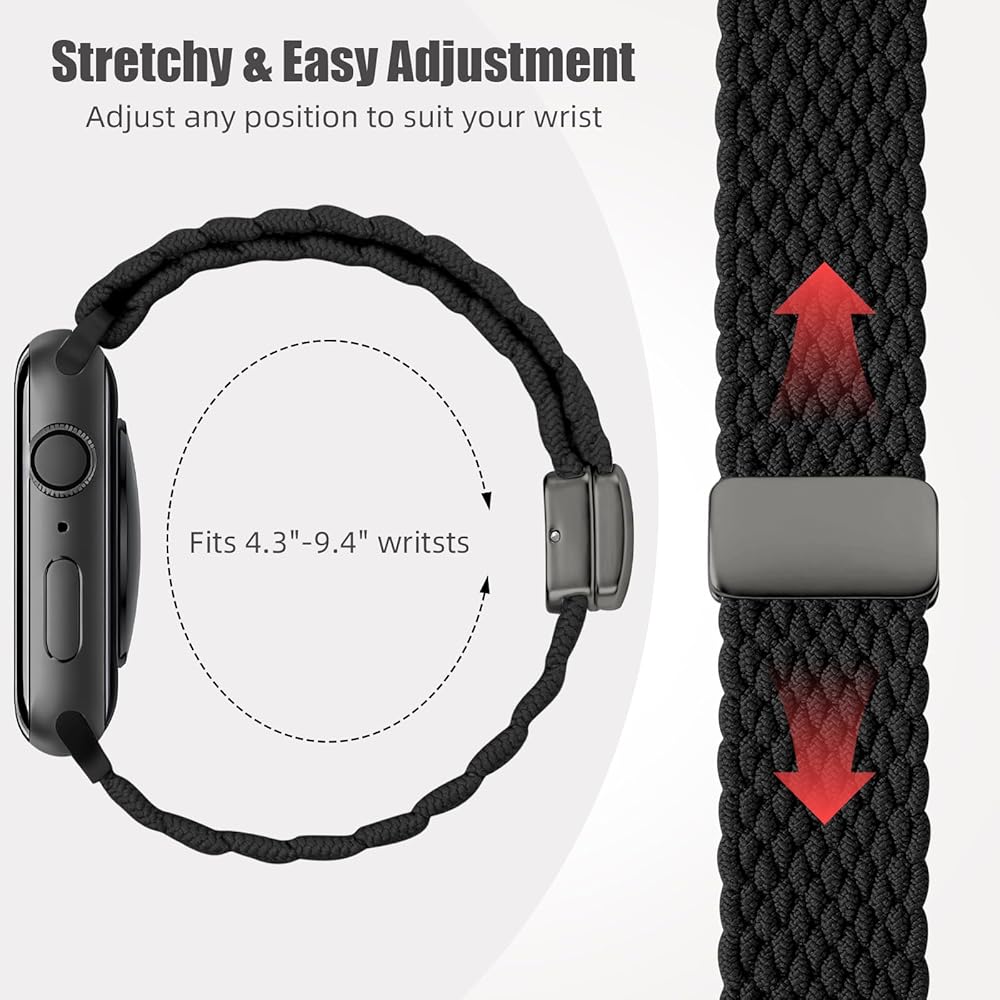• سهل الضبط: يضمن سوار ساعة Apple Ultra 2 الخاص بنا بتصميم منسوج فريد مع مشبك مغناطيسي مزدوج ملاءمة آمنة وسريعة. ما عليك سوى ضبطه على الوضع الأكثر راحة لك عند ارتدائه لأول مرة. بعد ذلك، ليست هناك حاجة لفك حزام ساعة أبل بشكل متكرر، حيث تسمح لك المادة القابلة للتمدد والمشبك المغناطيسي بارتدائه بسهولة، مما يوفر الراحة والملاءمة.