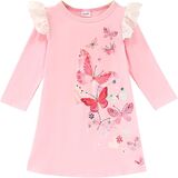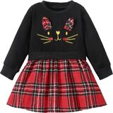 🎀تصميم فريد: تصميم بأكمام طويلة، مطبوع بأنماط كرتونية لطيفة مختلفة، فساتين جميلة على شكل حرف A لتجعل طفلتك الصغيرة أكثر سحرًا.