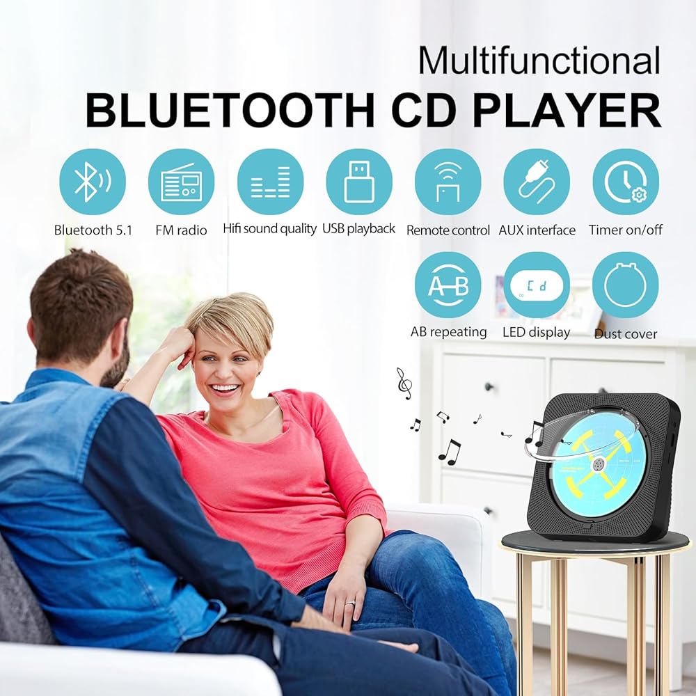 • 【فكرة للهدايا/ديكور المنزل】مشغل سي دي بمظهره الأنيق، واستخدام مجموعة واسعة من السيناريوهات، سواء كان يستمع إلى الموسيقى، أو الاستماع إلى الراديو، أو التعلم يمكن أن يلبي احتياجاتك الوظيفية. إذا استلمت المنتج ولم تتمكن من العمل، يمكنك الاتصال بخدمة العملاء لمساعدتك