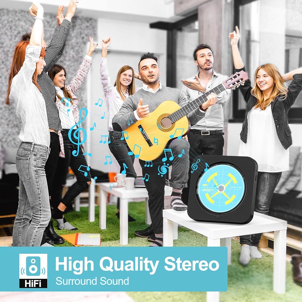 • 【مكبرات صوت ستيريو HiFi 】تم تصميم مشغل الأقراص المضغوطة مع مكبرات صوت dtereo مزدوجة، ولا يمكن أن يمنحك تأثير الصوت المحيطي HiFi الذي لا يفقد فقدان تجربة موسيقية مثالية فحسب، بل يحمي أذنيك أيضًا من التلف.