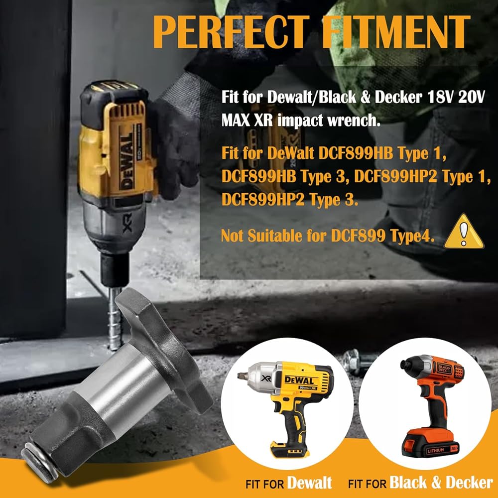 【Perfect Fitment】This N415875 Impact Wrench Anvil Assembly 1/2" is designed to fit for Dewalt/Black & Decker 18V 20V MAX XR impact wrench. Fit for DeWalt DCF899HB Type 1, DCF899HB Type 3, DCF899HP2 Type 1, DCF899HP2 Type 3. Not Suitable for DCF899 Type4.