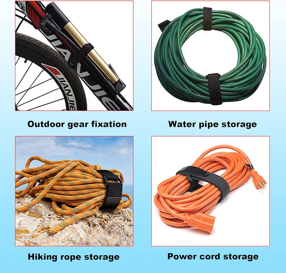 【Multi-function storage straps】Because the length can be cut freely, it is very suitable for bundling small, medium and large items for storage and organizing. General use: use straps with buckle to manage all kinds of cable wires, fix bicycle racks, skis, camping equipment, molle systems, boats and kayaks, etc. Other uses: black nylon straps for sewing, DIY craftsmanship, clothes or shoes, etc. Ideal for home office or indoors outdoors.
