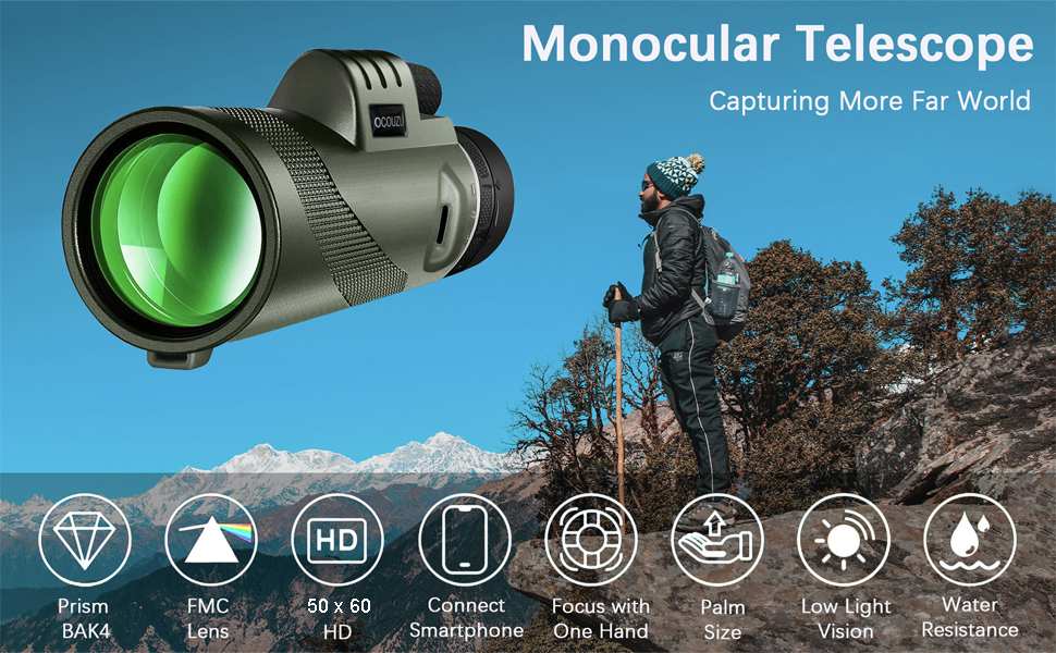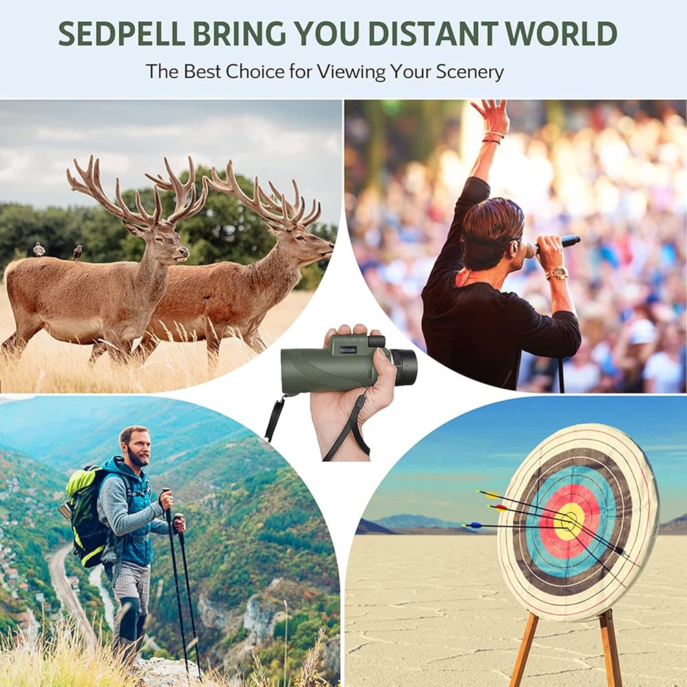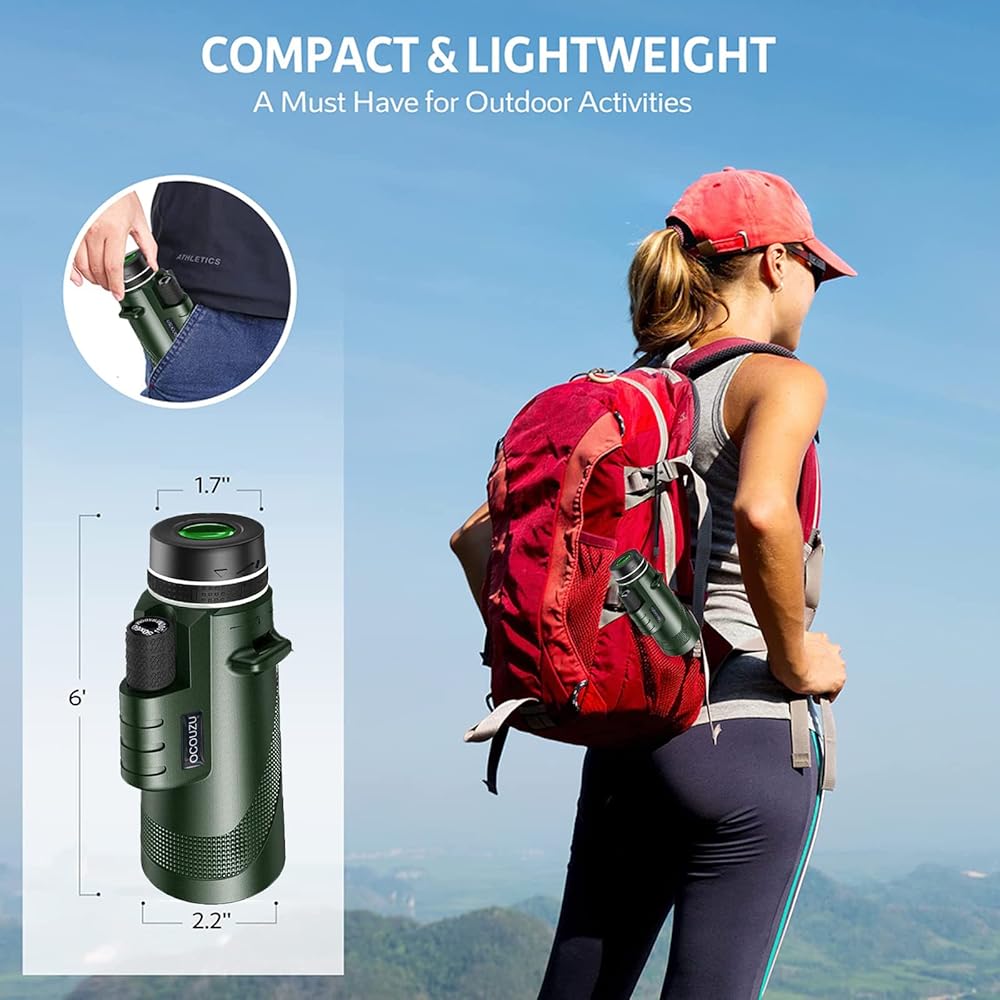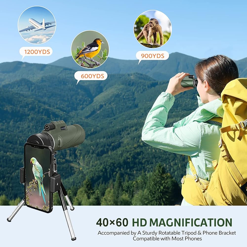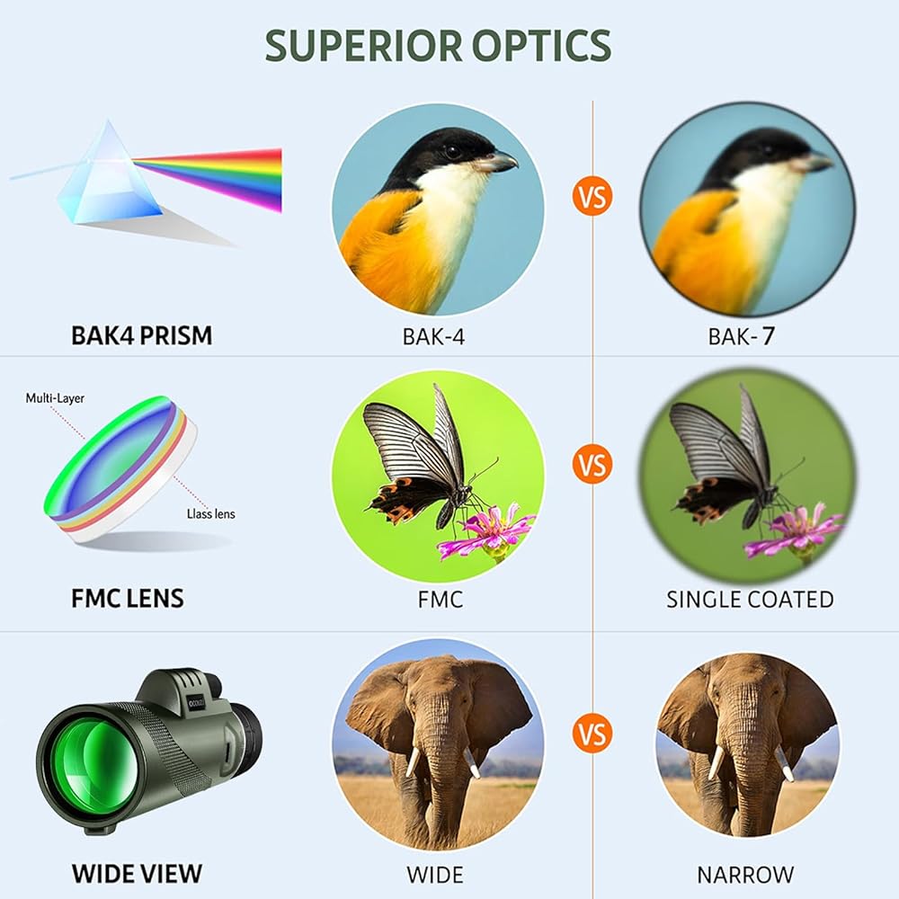 【تباين ودقة عالية】هذا التلسكوب أحادي العين مع منشور BAK-4 وعدسة مطلية بالكامل، يصل نفاذية الضوء إلى 99.9%. مثالية لمشاهدة الطيور على المدى الطويل، وسيارات السباق، وألعاب الكرة، والمشي لمسافات طويلة، ومشاهدة النجوم، واستكشاف الطبيعة.