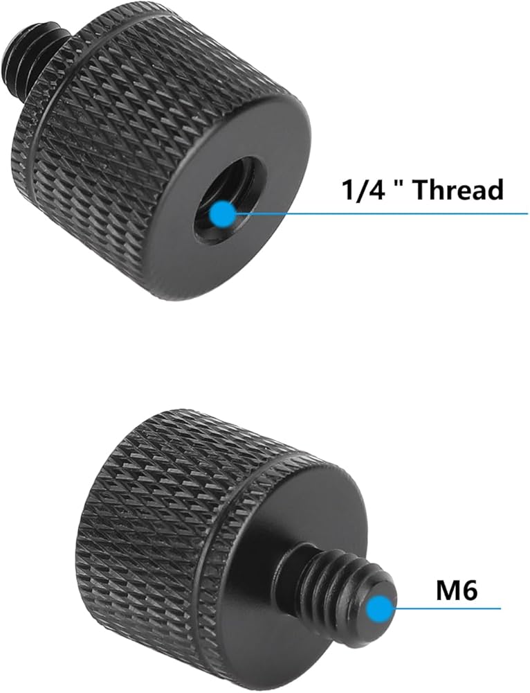 This SZRIG screw is use to convert M6 female thread hole to a 1/4"-20 thread hole for the microphone or LED light.