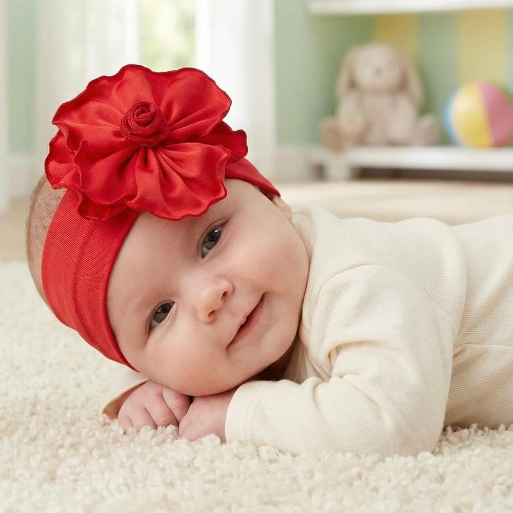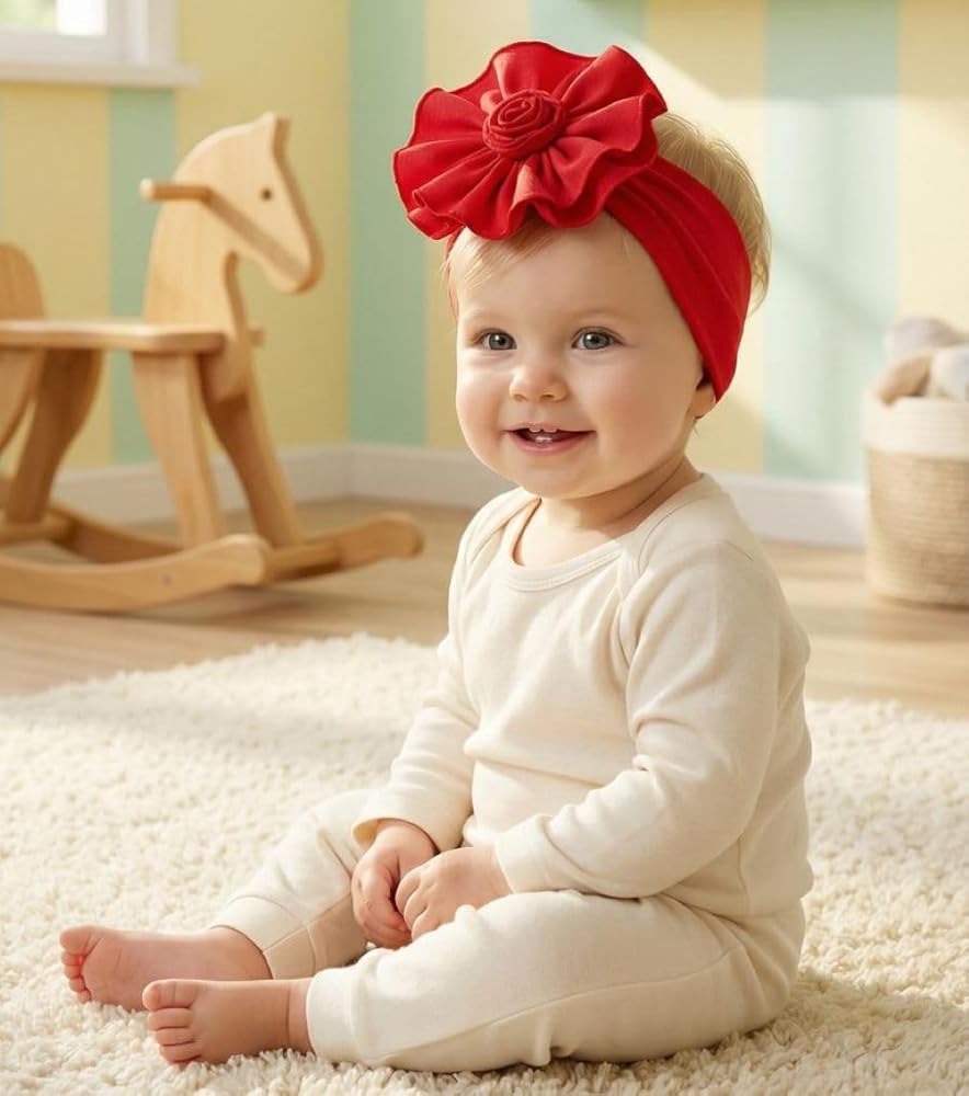 أفضل جودة مضمونة: عصابات رأس Babygiz للفتيات الصغيرات ذات الزهور الكبيرة مصنوعة يدويًا كإنتاج بوتيك باستخدام جودة فاخرة معتمدة من OEKO-Tex بنسبة 95% قطن و5% ألياف لدنة لأميرتك الصغيرة.