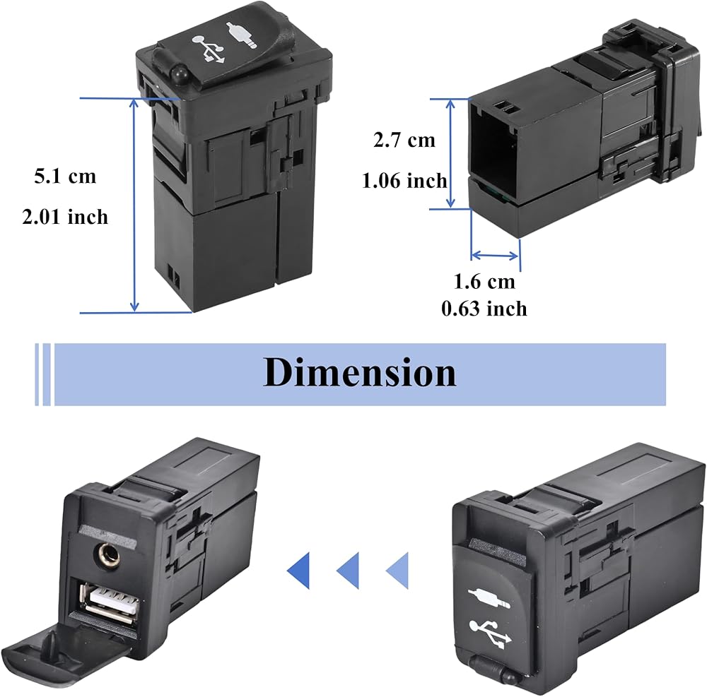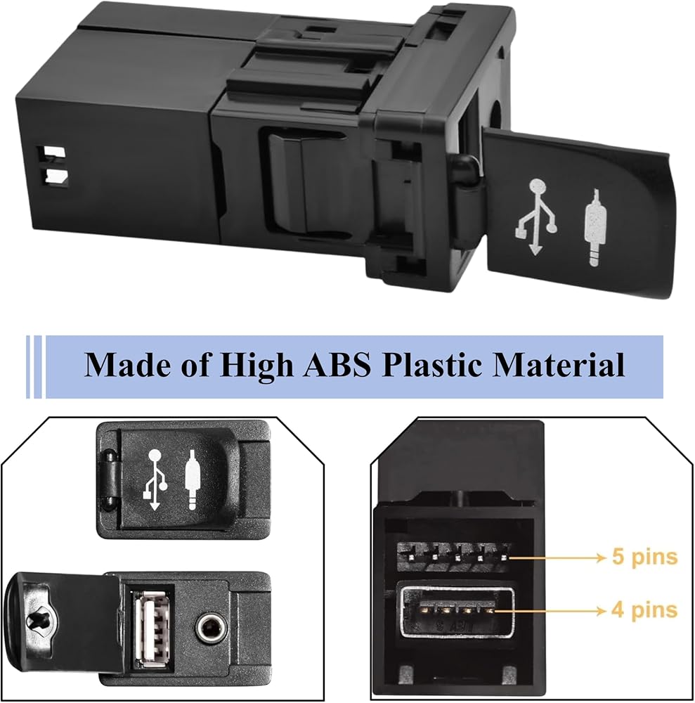 يستبدل رقم الجزء - مجموعة المحولات لـ 86190-0R010 86190-52060. تم تصنيع مقبس إدخال الصوت هذا وفقًا لمواصفات OE ليتوافق مع مظهر مقبس aux الأصلي، وواجهة USB-A (4 دبابيس)، وواجهة AUX (6 دبابيس) تساعد على ضمان اتصال قوي وإيجابي.