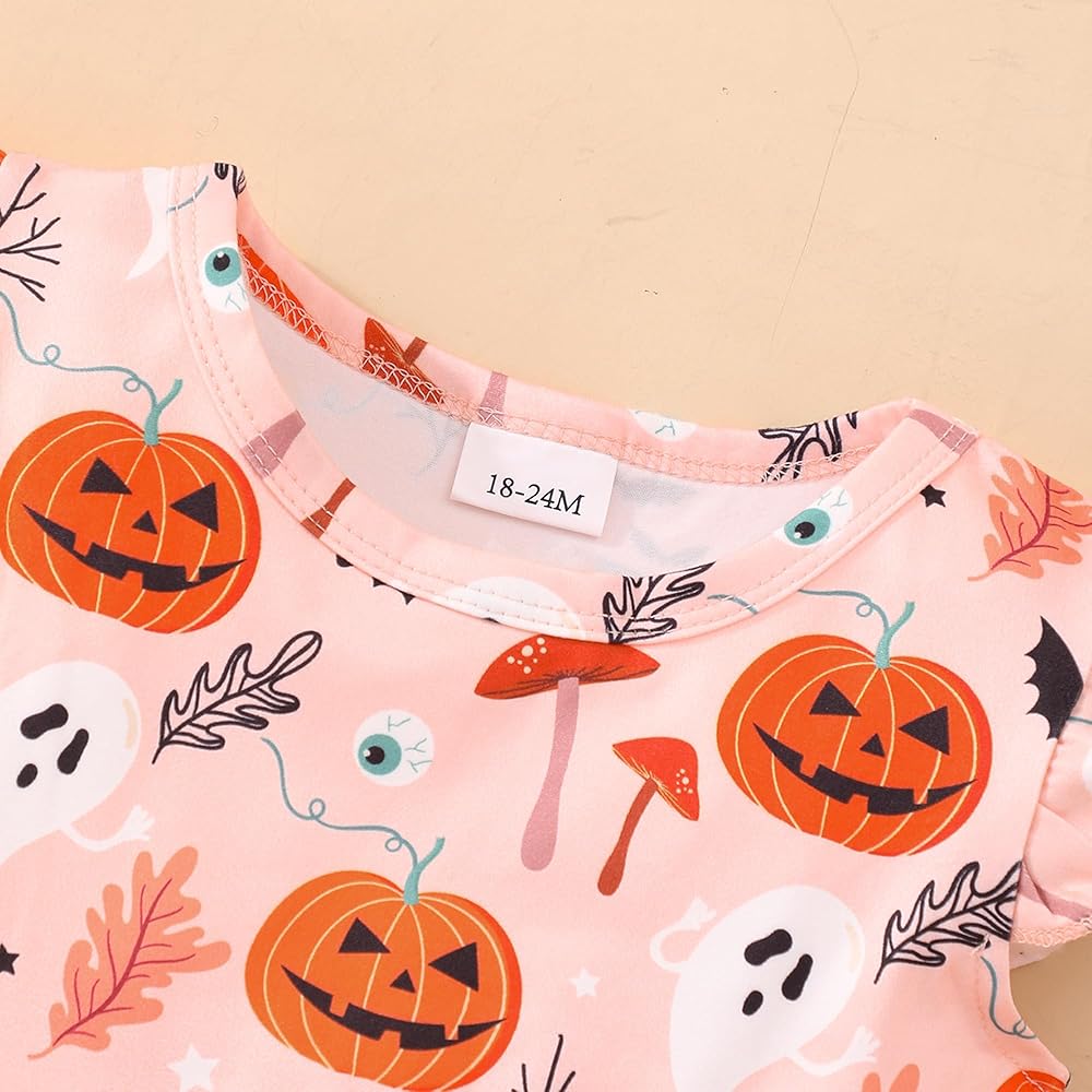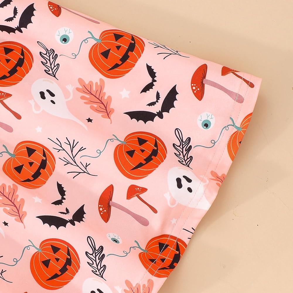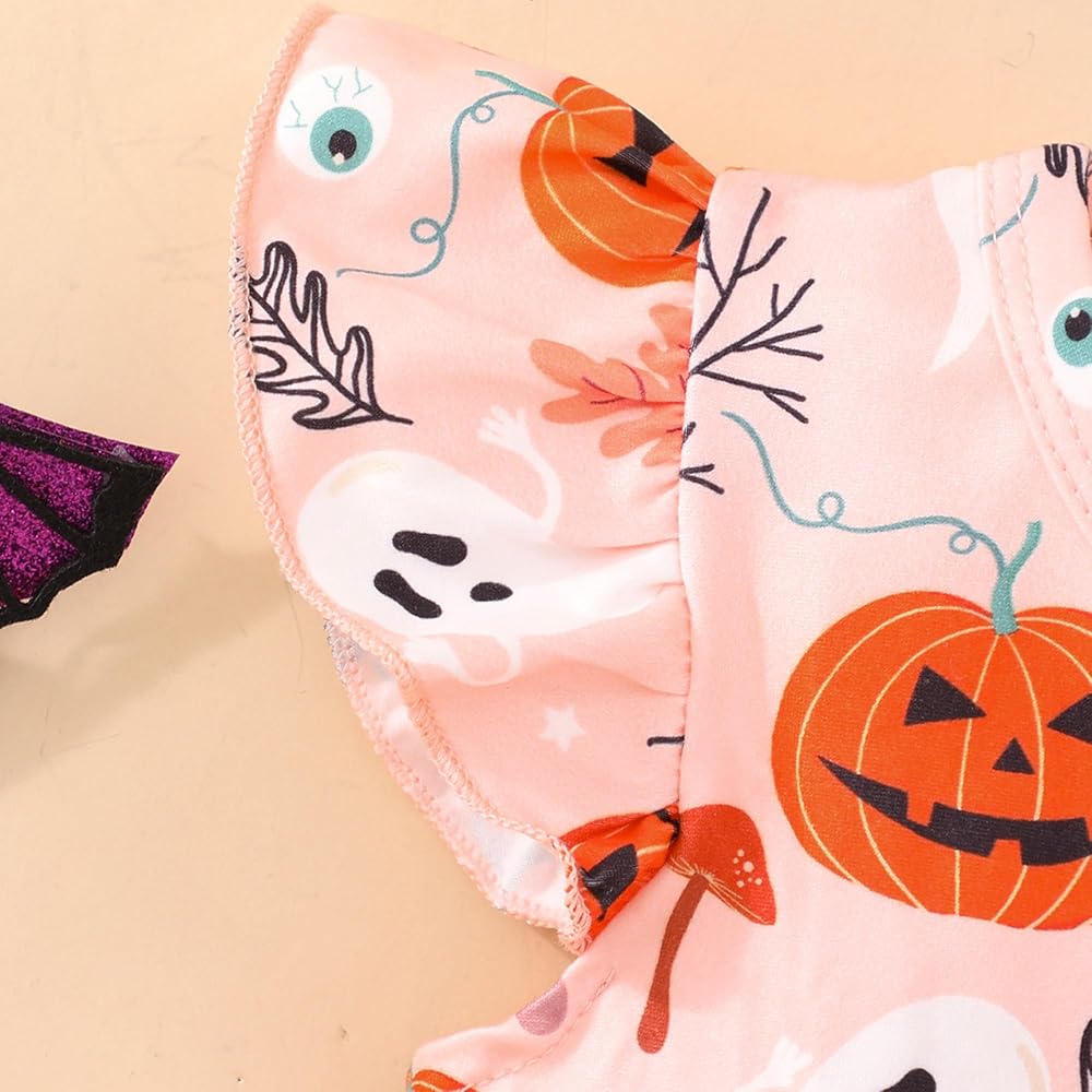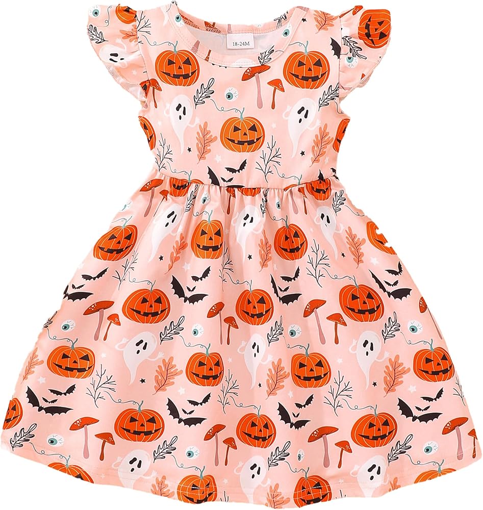 • فستان للفتيات الصغيرات في الهالوين: مطبوع على شكل قرع وهيكل عظمي لطيف، نمط وردي وأرجواني وأسود، فستان رائع للهالوين لطفلتك الصغيرة للاحتفال.
