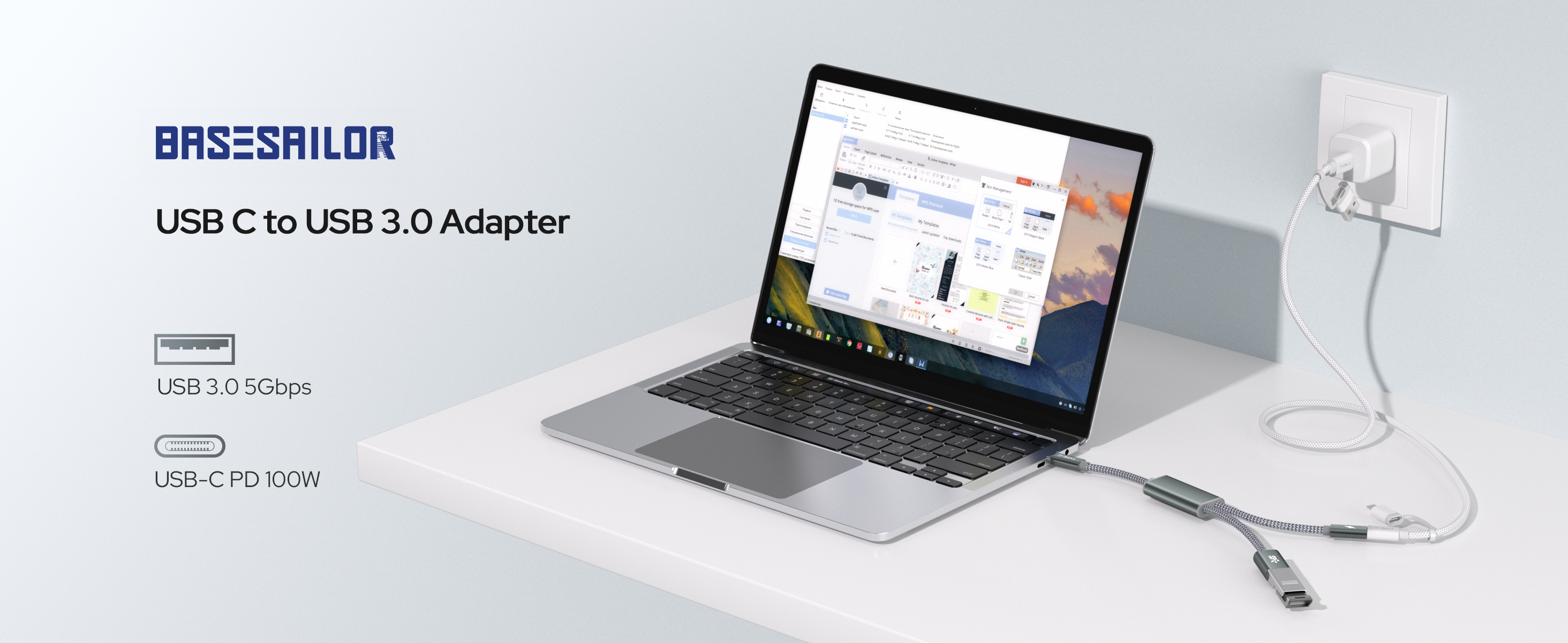 محول كابل Basesailor USB C OTG مع مصدر طاقة، شحن من النوع C إلى 100 واط PD وشاحن مقسم USB 3.0، Thunderbolt 3 لهاتف iPhone 16 15 Pro، Google TV Chromecast 2020، MacBook، iPad Air 4 5، S24 S23