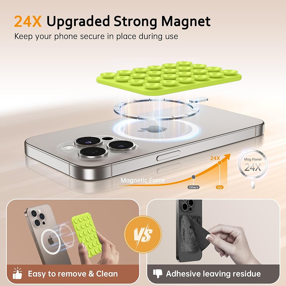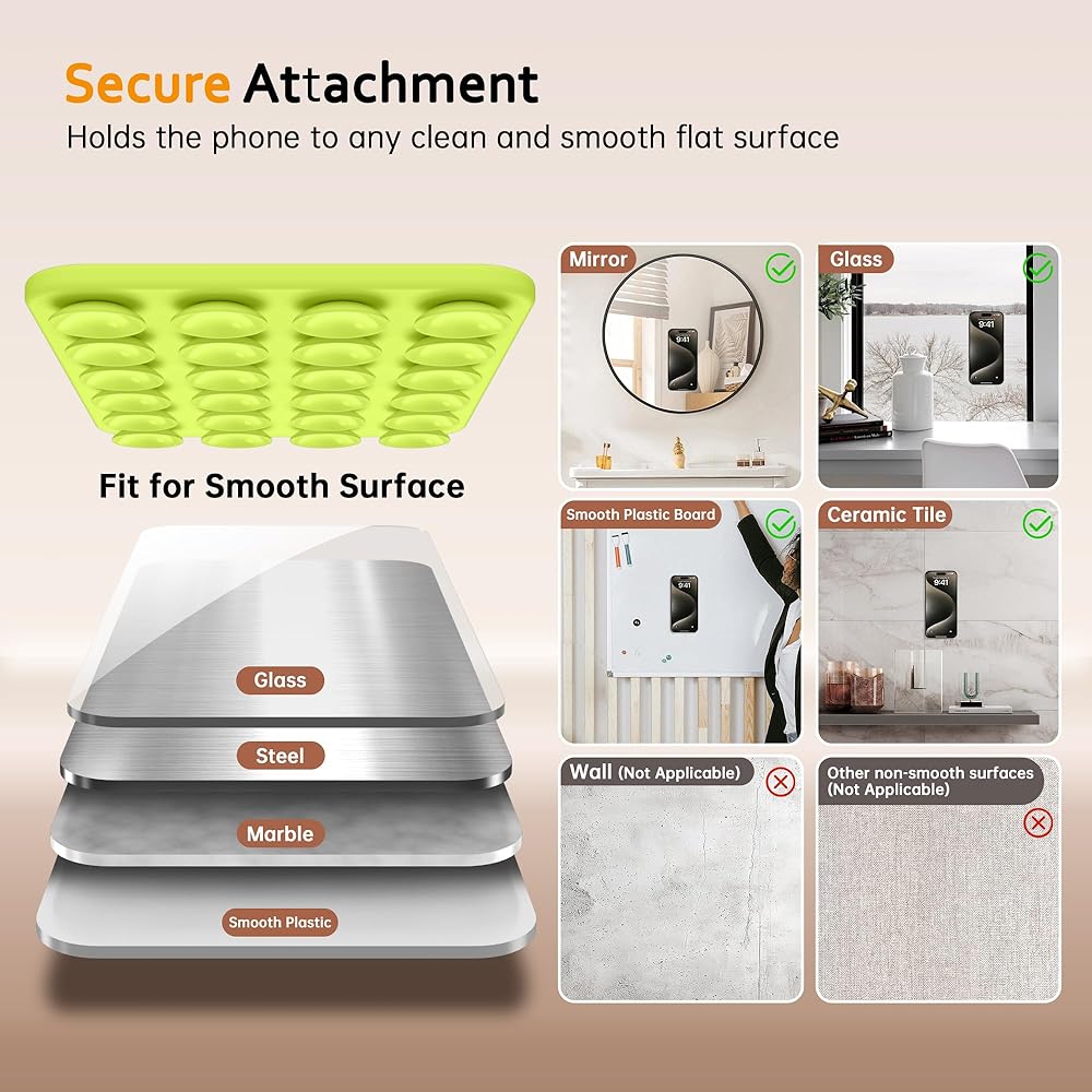 [Easy to Use] Simply snap on the magnetic base of the suction phone mount to any smooth surface, securely position your phone, & start enjoying hands-free suction cup phone grip instantly!