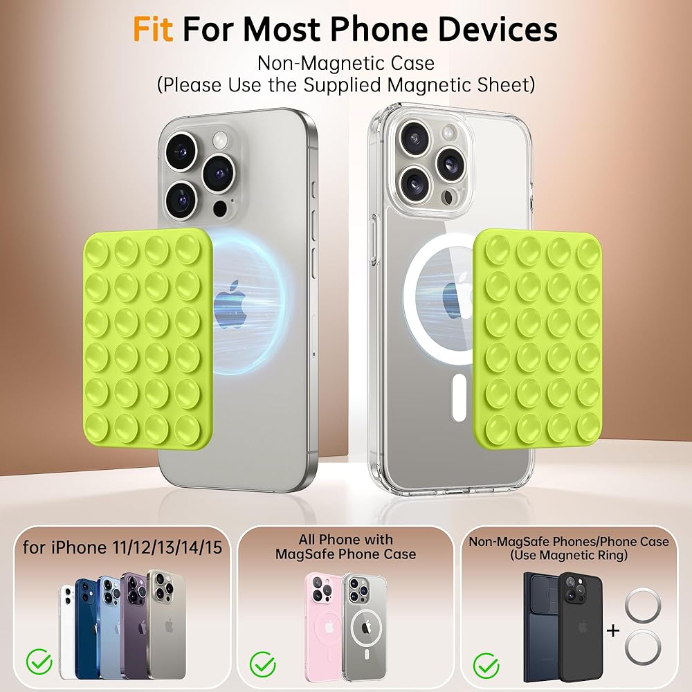 [Tips] If your phone case is not compatible with Magsafe, please don't worry—we've included 2 separate magnetic metal rings to keep everything connected with our phone suction mount.