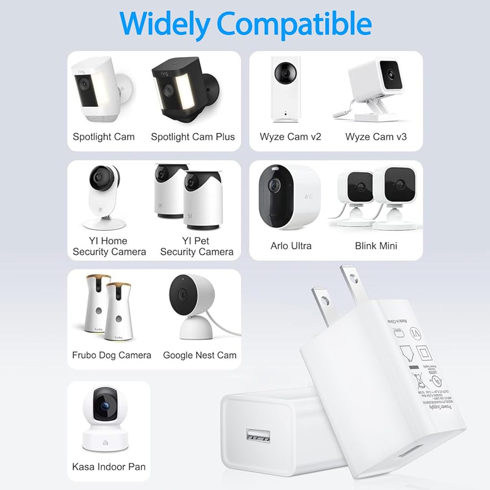 • Compatible with Wyze Cam V3/V2/Outdoor/Pan,Blink xt2 Mini Home Security, Indoor Cam, TENVIS, ieGeek,for Amazon Cloud Cam, Kasa Cam, Arlo Q, Arlo Pro cam/ Arlo Pro 2 cam, YI Dome Camera, YI Home Camera,Wansview, Stick Up Cam Battery,for Nest Cam Indoor, Dropcam ect brand wireless HD camera, Spotlight Cam,Dropcam Pro Wifi camera, Furbo Dog Camera, Fire Tablet and more