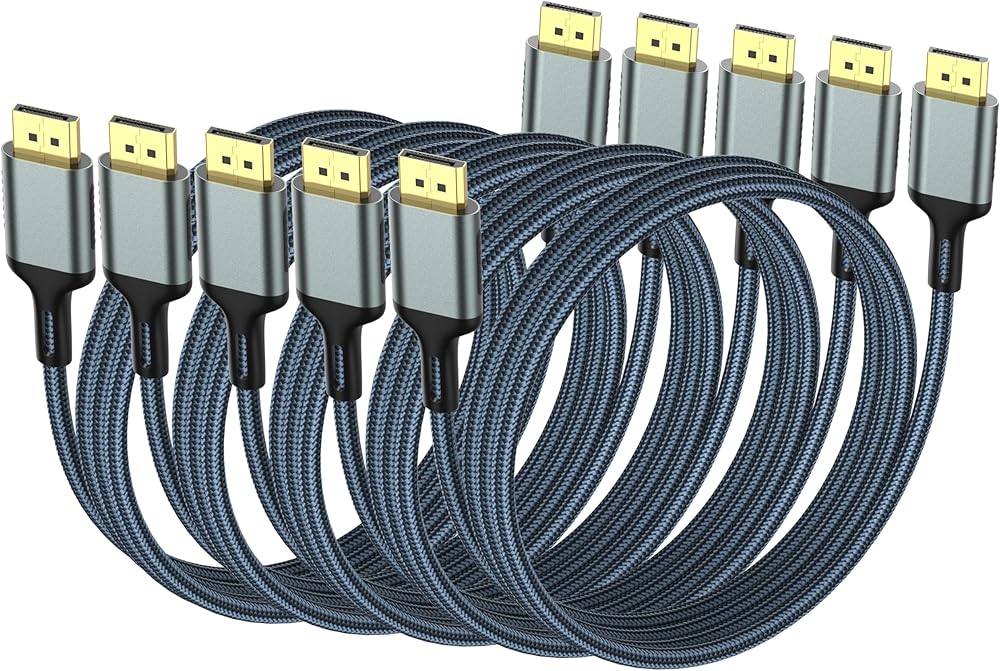 منفذ عرض إلى كابل منفذ العرض 5 حزم، كابل DisplayPort 1.4 8K، كابل DP إلى DP بطول 6.6FT، سلك عرض عالي السرعة (8K@60 هرتز، 4K@144 هرتز، 2K@240 هرتز) للشاشة، الكمبيوتر، سطح المكتب، الكمبيوتر المحمول، الكمبيوتر الشخصي