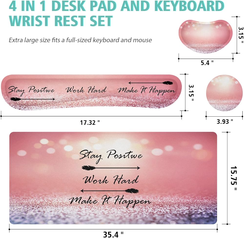 【4 قطع لوحة ماوس كبيرة لمجموعة المكتب】لوحة المكتب: 35.4 × 15.7 بوصة، مسند المعصم للوحة مفاتيح الكمبيوتر: 17.3 × 3.2 × 0.8 بوصة، مسند المعصم للفأر: 5.4 بوصة × 3.15 بوصة × 0.98 بوصة، القاعدة: 3.9 بوصة. وسادة مكتب ممتدة كبيرة بما يكفي لتناسب لوحة مفاتيح وفأرة كاملة الحجم، مما يوفر مساحة كبيرة للألعاب أو العمل المكتبي، ويحمي مكتبك من الرطوبة والخدوش للحفاظ على سطح المكتب نظيفًا ومرتبًا.