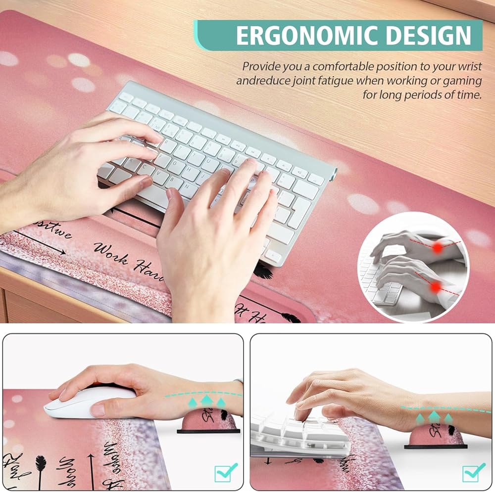 【تصميم مريح】لوحة الماوس هذه مع مجموعة دعم المعصم مصممة من إسفنج الذاكرة ومادة ناعمة ناعمة لمسند المعصم، خفيفة الوزن ومريحة ومتينة للاستخدام اليومي. تم تصميم مجموعة وسادة ماوس الألعاب هذه لدعم معصم لوحة المفاتيح ووسادة معصم الماوس بشكل مريح للحفاظ على الذراعين والمعصمين واليدين من التألم أثناء العمل والألعاب لفترات طويلة من الوقت، وتقليل إجهاد المعصم والتعب.
