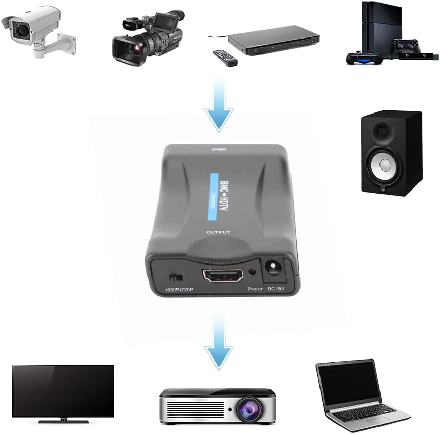 محول BNC إلى HDMI، محول محوري صوت وفيديو 1080p 720p HD مخرج كابل USB موصل متعدد الأوضاع تناظري CVBS كاميرا أمان HD شاشة عرض واجهة مراقبة لجهاز PS2 PS3 PSP