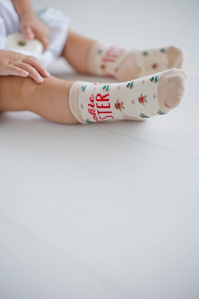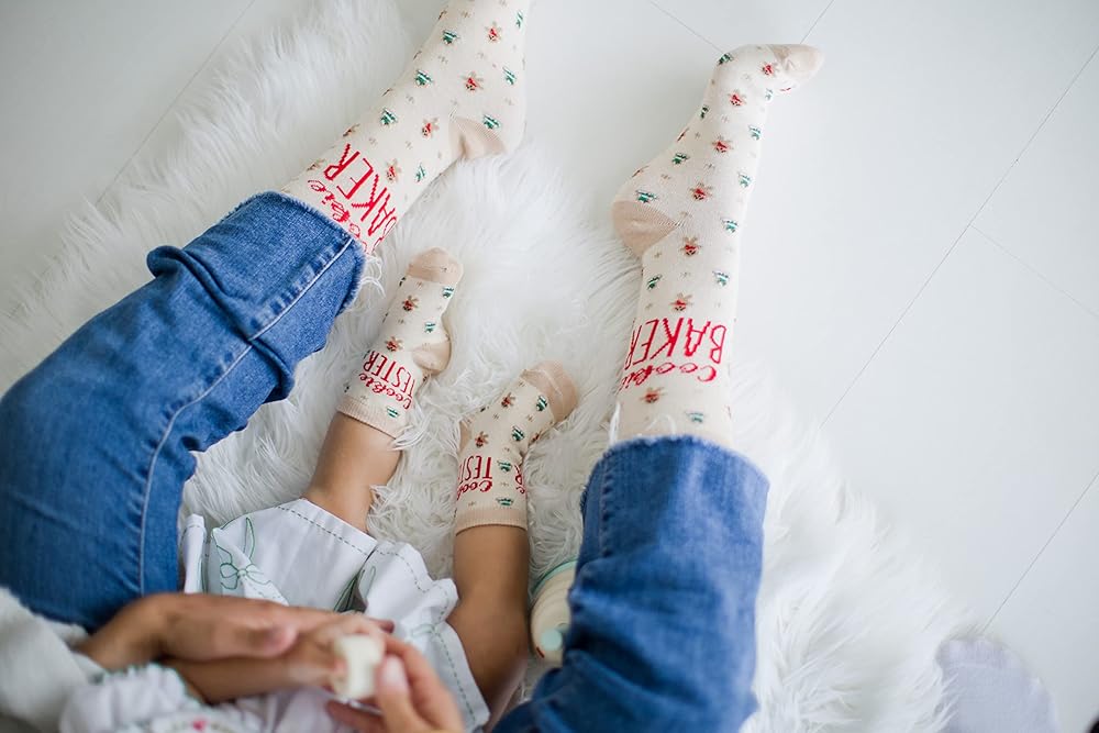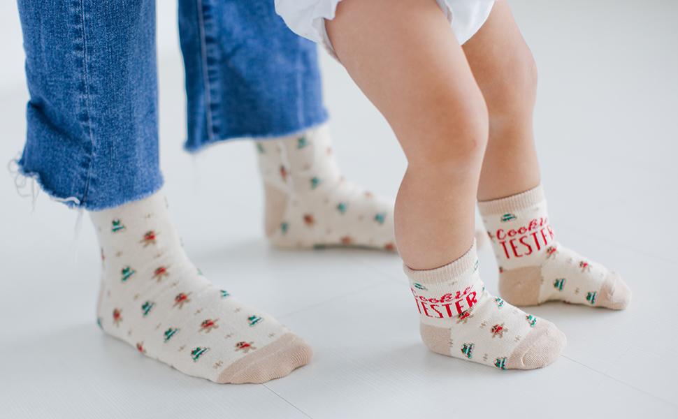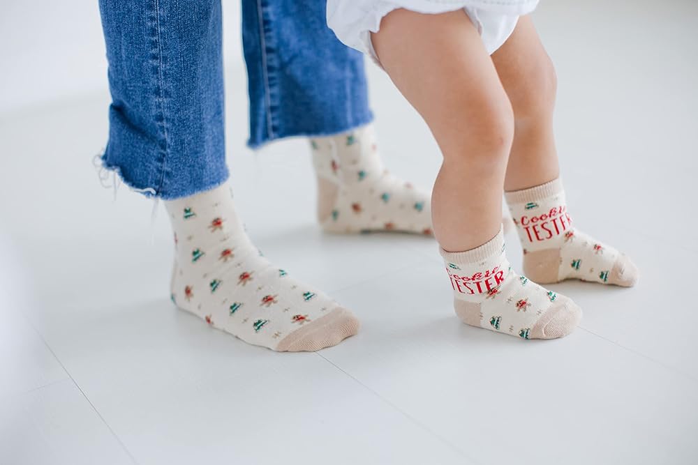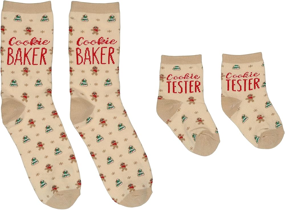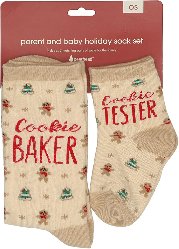• تشتمل مجموعة الجوارب الممتعة والاحتفالية هذه على "خبز البسكويت" على جورب الوالدين و"اختبار البسكويت" على جورب الأطفال الصغار، مما يزيد من متعة العطلة!
