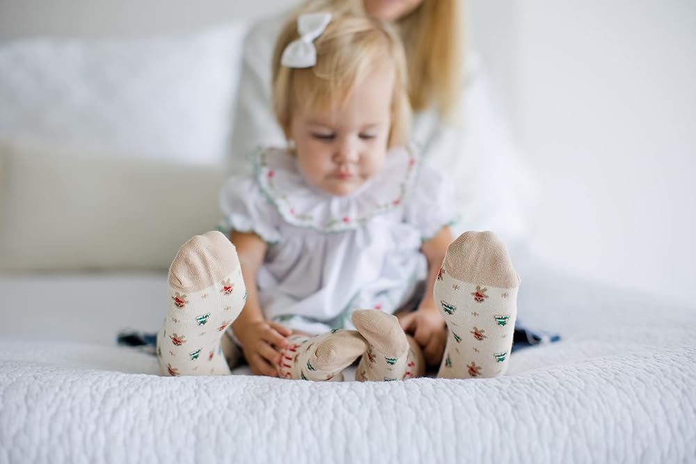 • تتضمن زوجًا واحدًا من الجوارب الكريمية مع تصميمات خبز الزنجبيل وشجرة عيد الميلاد المطبوعة للأب أو الأم وزوج واحد للأطفال الصغار الذين تتراوح أعمارهم بين 18 و24 شهرًا.
