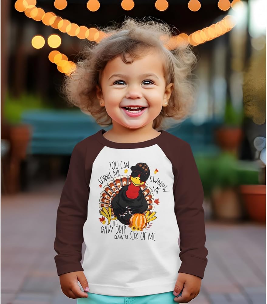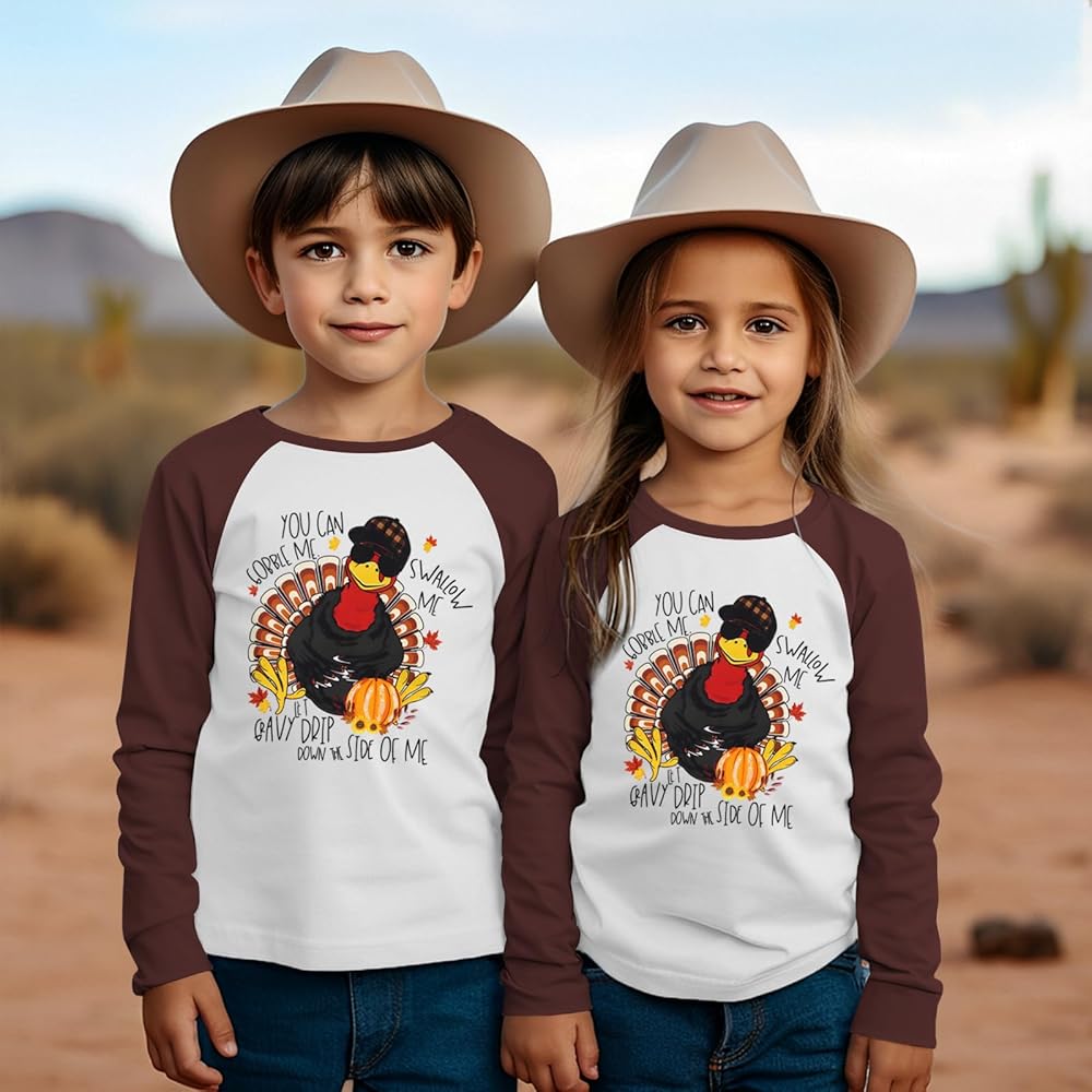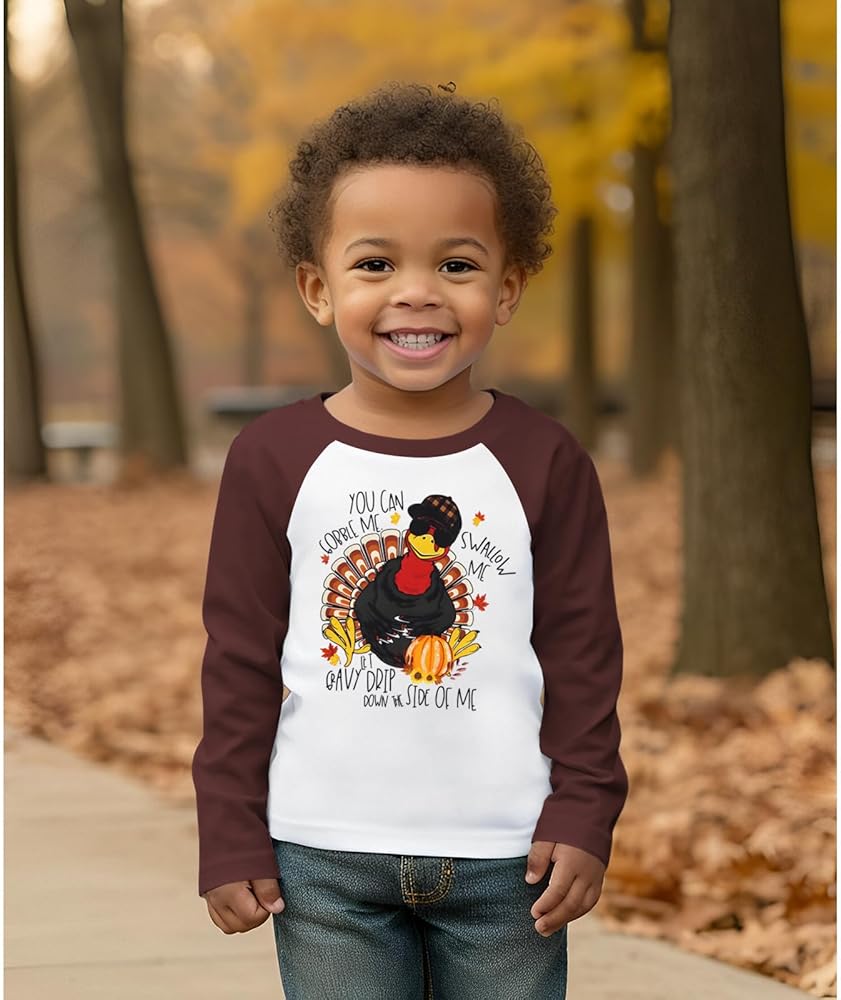 • مطابقة: قمصان طويلة الأكمام لعيد الشكر للأطفال الصغار والبنات تتناسب جيدًا مع السراويل الضيقة والجينز والسراويل القصيرة والتنانير والأحذية طويلة الرقبة وما إلى ذلك. هدية مثالية لعيد الشكر للفتيات أو الأولاد.