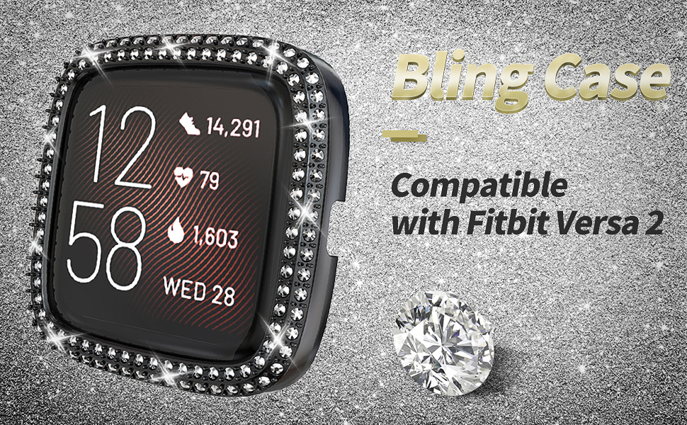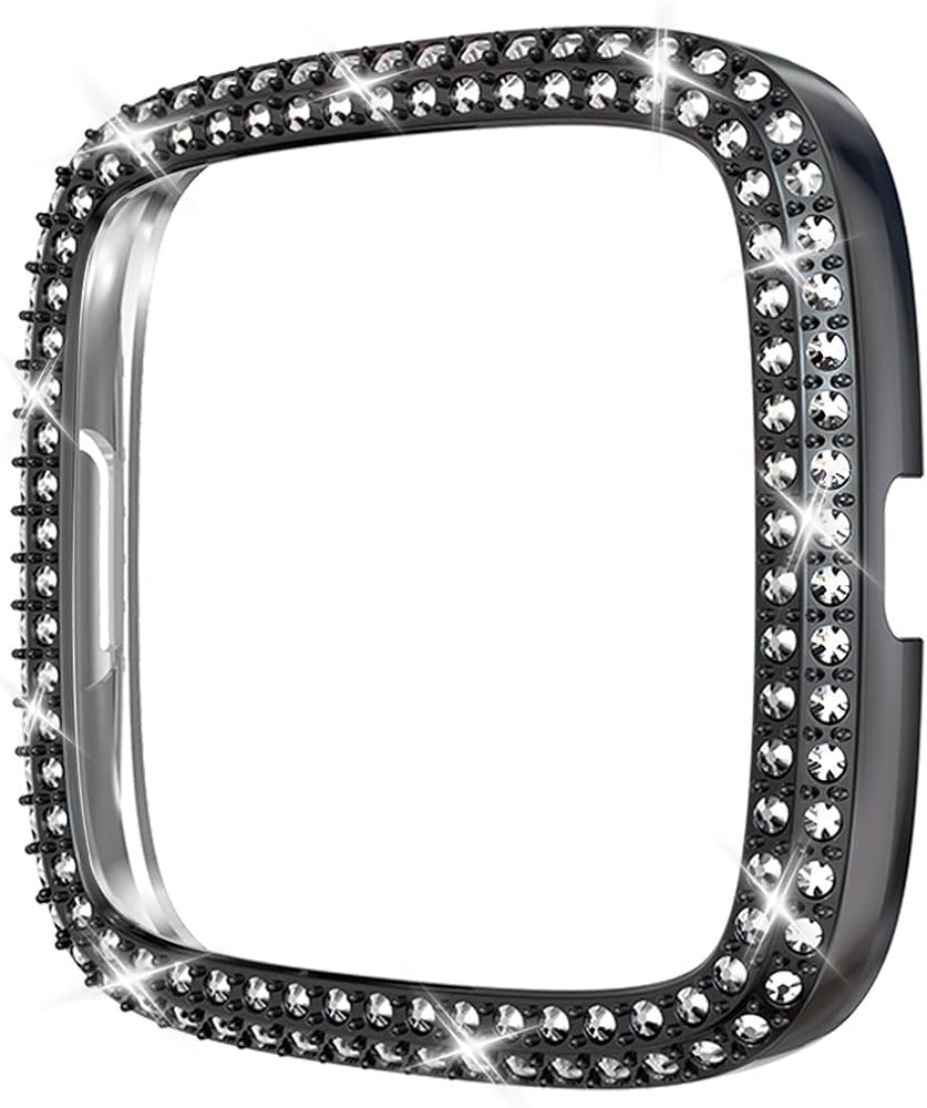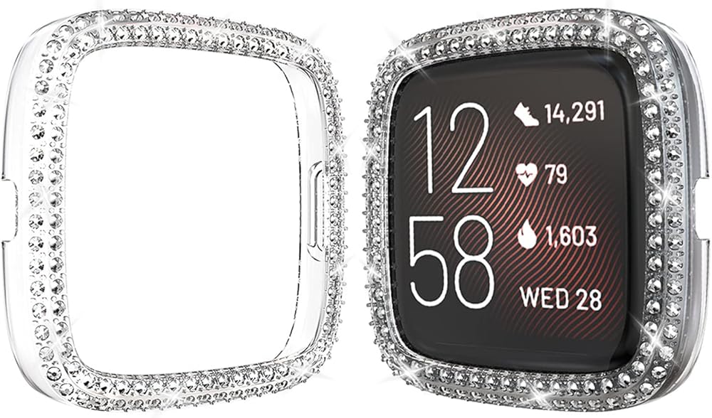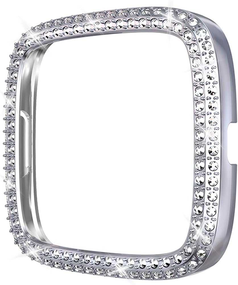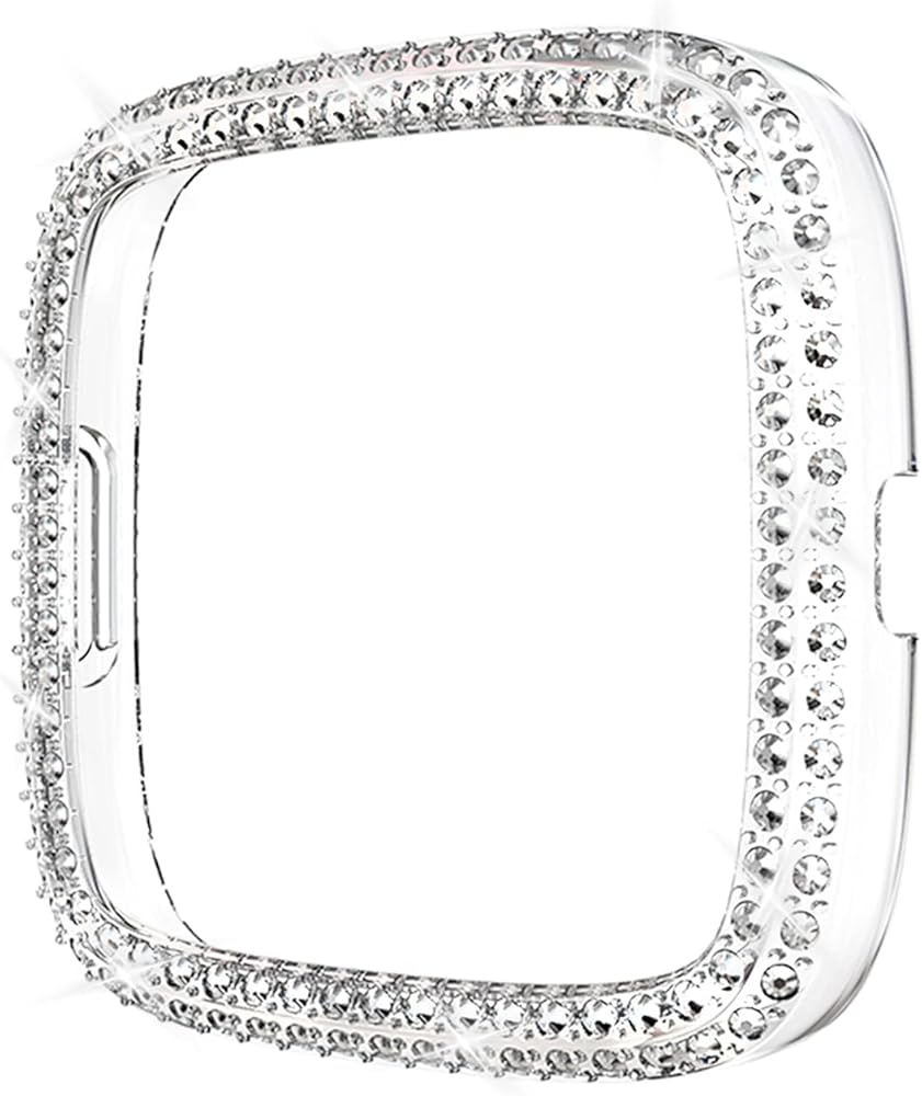 حافظة حماية متوافقة مع غطاء Fitbit Versa 2، بدون طبقة شاشة، إطار ممتص للصدمات مطلي بالكمبيوتر بصف مزدوج من الكريستال (شفاف، Versa 2)