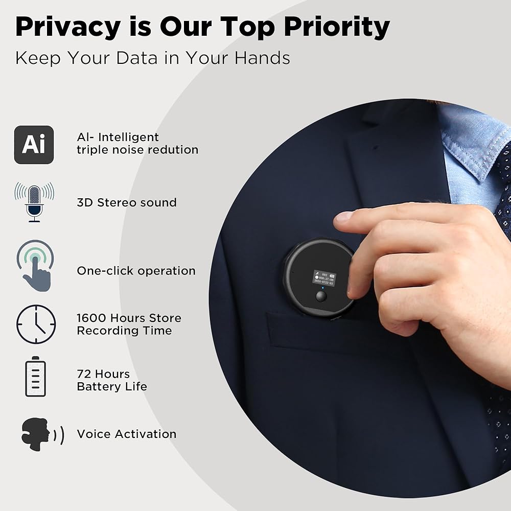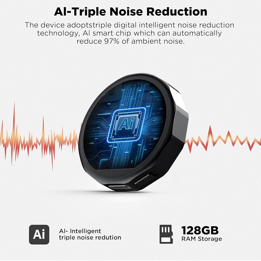 AI Triple Noise Reduction: The digital voice recorder uses AI technology with a triple noise reduction system that intelligently detects and models noise. Equipped with DSP chips, the system effectively reduces background noise, enhancing audio quality for a clearer and more authentic sound experience.