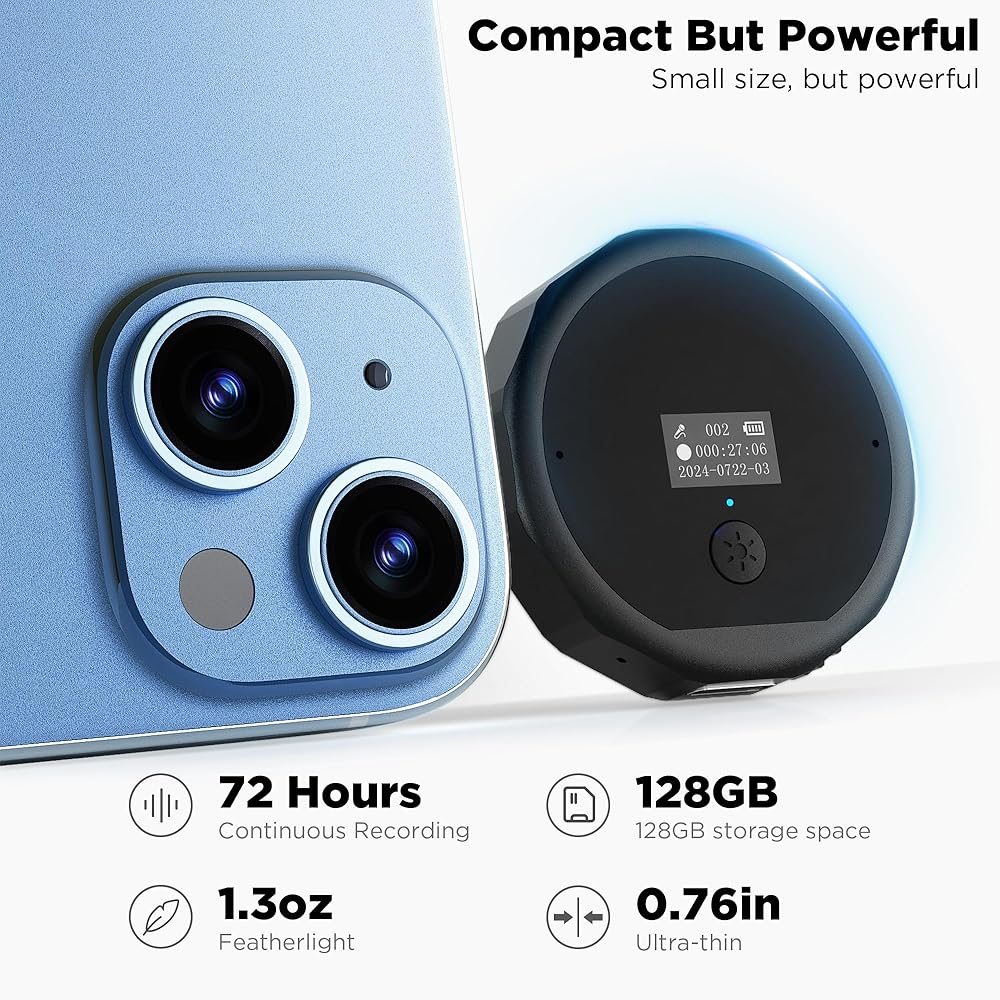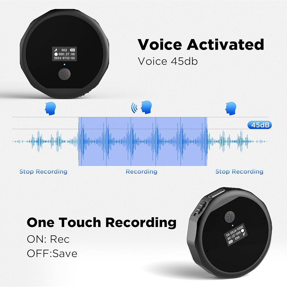 128GB Voice Recorder: The DEOVCVN recorder seamlessly integrates recording and MP3 functionality, making it one of the most versatile mini voice recorders on the market. Newly upgraded with 128GB of storage, it supports up to 1600 hours of recording time.