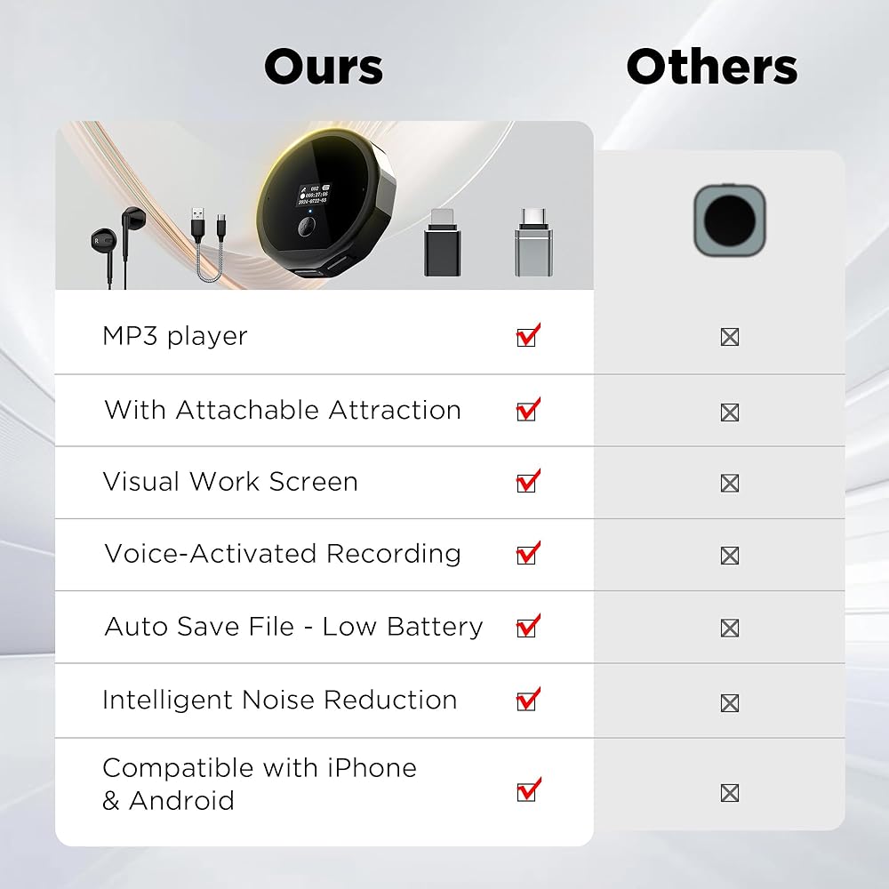 High-Definition Display: Our recording device features a unique design with a high-definition display, allowing you to monitor recording status and playback progress at any time. The clear and intuitive screen makes it easy to track the recording process and also supports MP3 playback. Ensure that every detail of your recording and playback is perfectly controlled.