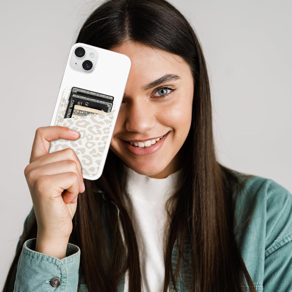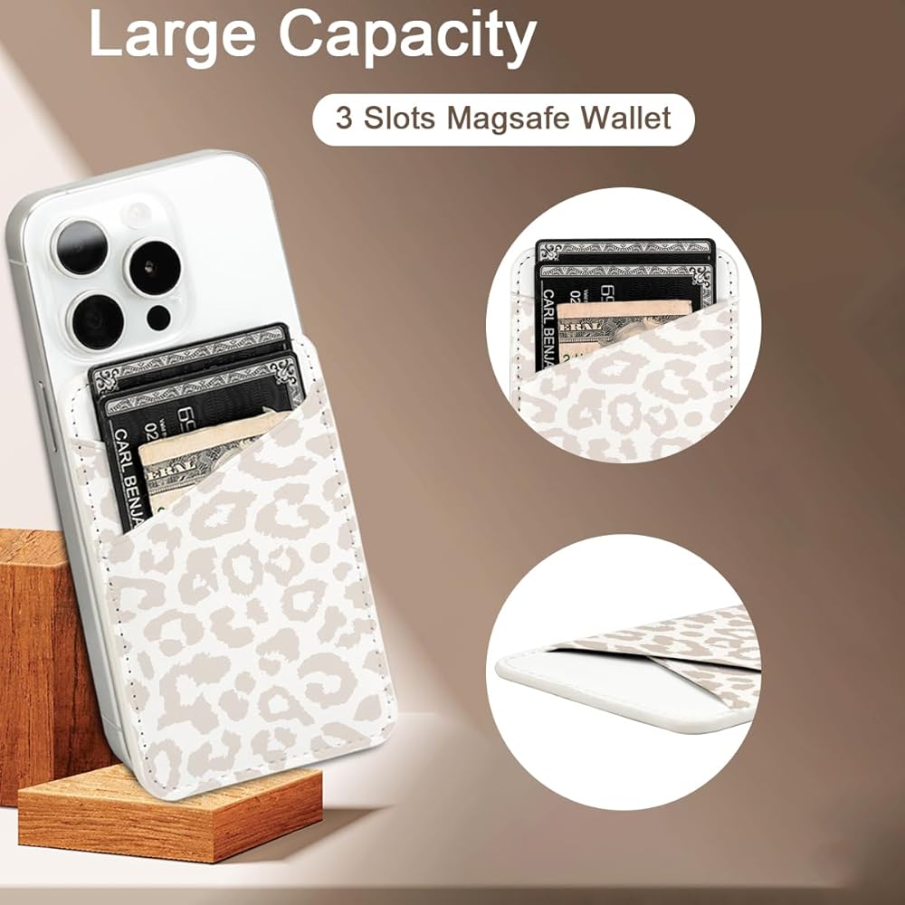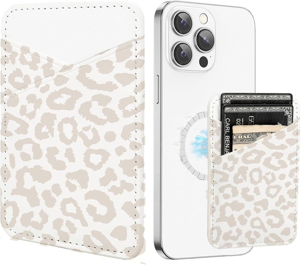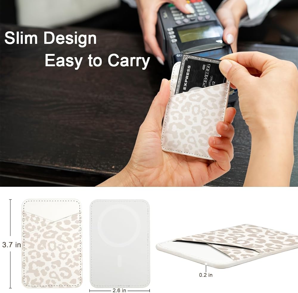 حامل بطاقات المحفظة المغناطيسية المحدثة من uCOLOR - متوافق مع MagSafe لسلسلة iPhone 15/14/13/12 Pro Max، محفظة هاتف مغناطيسية لظهر الهاتف مع فتحة بطاقتين Apple Mag Safe Walle (بيج ليوبارد)