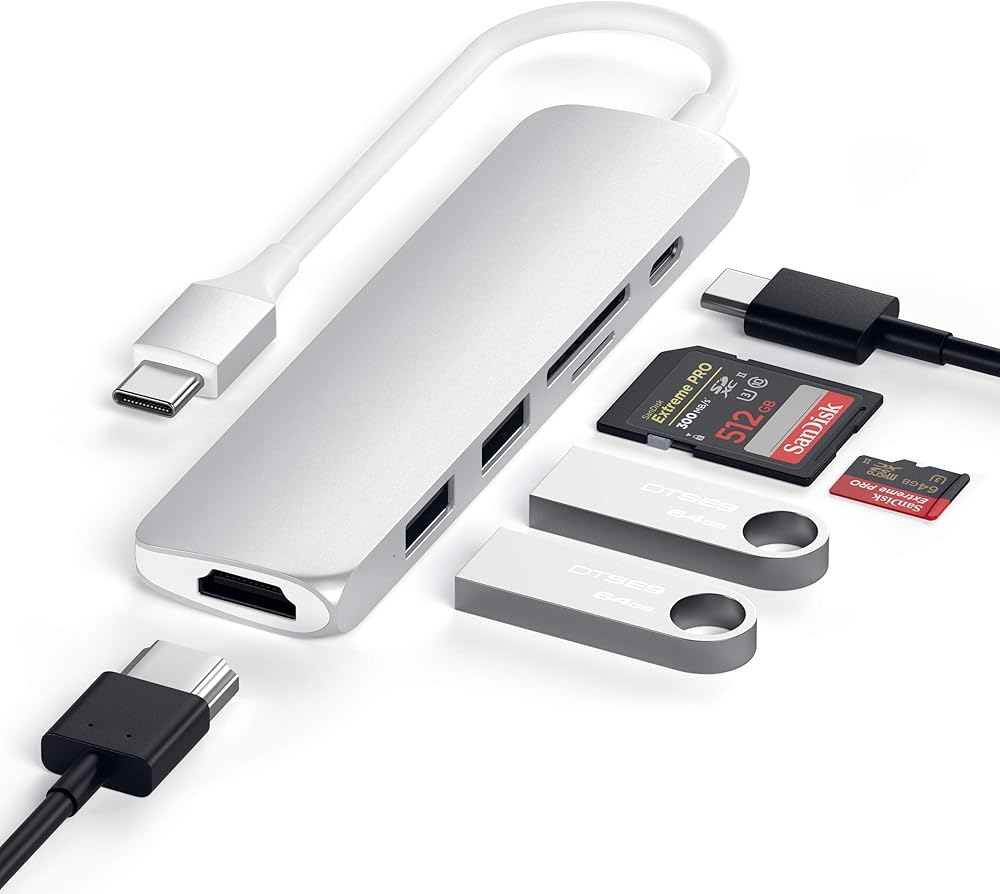 مركز اتصال شامل - محور USB C نحيف الكل في واحد يعمل كحل اتصال مع إمكانيات موسع شاشة الكمبيوتر المحمول. استمتع بشبكات مستقرة مع دعم Ethernet، وشحن USB C PD فعال يصل إلى 60 وات، ونقل سريع للبيانات باستخدام قارئات بطاقات Micro/SD (UHS-I). مزود بثلاثة منافذ USB 3.0، يوفر كل منها سرعات تصل إلى 5 جيجابت في الثانية.
