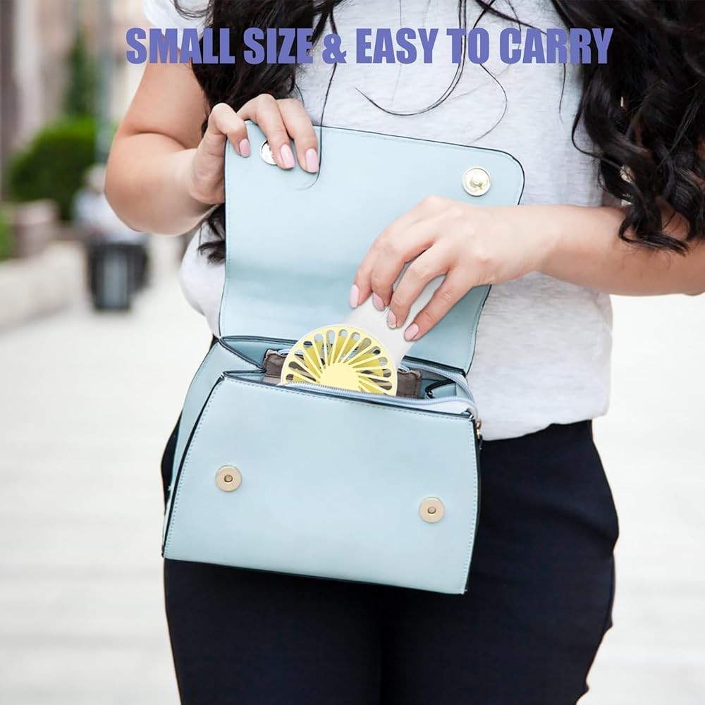 Compact and Portable Design: This handheld fan is designed to be small and lightweight, making it easy to carry in your bag or pocket during travel or daily outings.