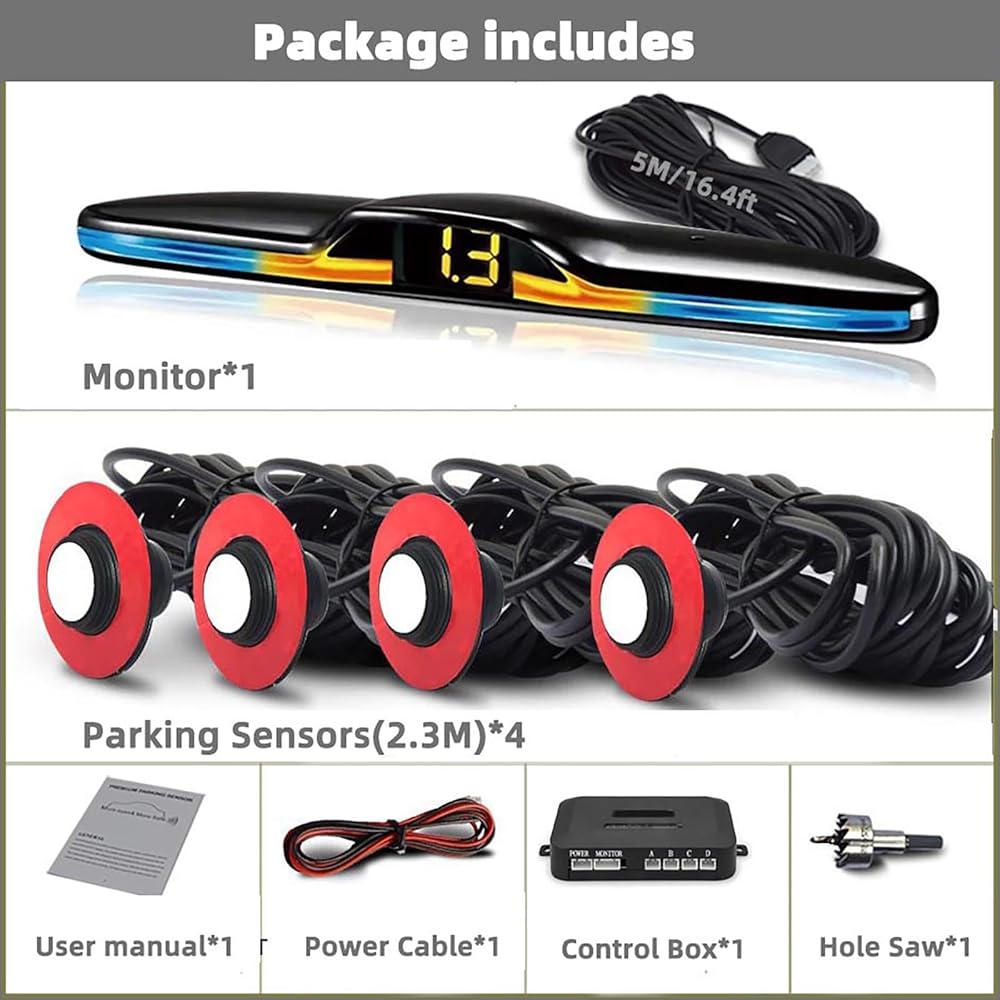 4: الجهد 12 فولت، نطاق الكشف 0.3 م ~ 2.3 م (7.5 قدم)، البيانات دقيقة، التنبيه سريع، كلما اقترب العائق، كلما كان الصوت أسرع، مثل: ثنائي ... بيبي. .. بيبيبيبيبيبيبيبيبي. مرن
