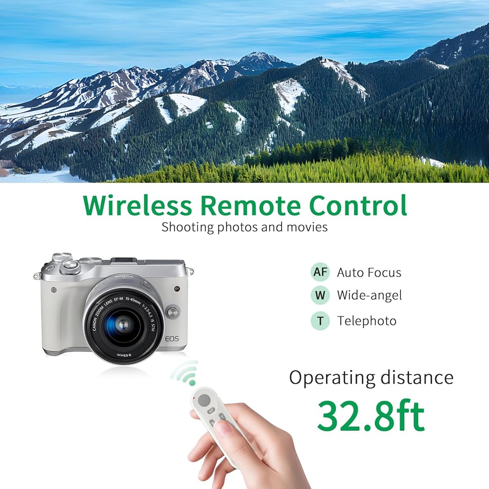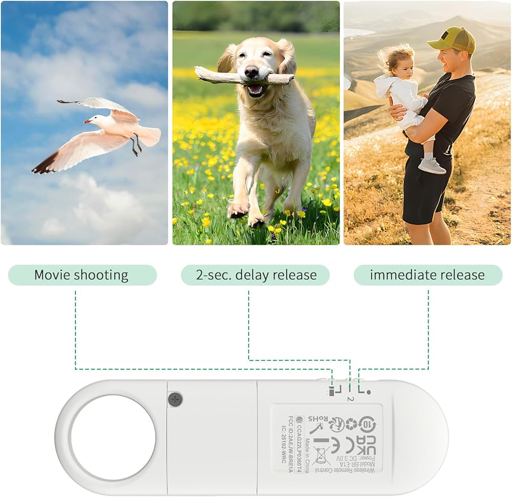 • جهاز تحكم عن بعد للكاميرا عالي الأداء: يتجنب الاهتزاز الناتج عن الضغط على الكاميرا مباشرة، مما يعزز وضوح الصورة من خلال التحكم اللاسلكي. مثالية لصور السيلفي واللقطات الجماعية والتصوير المستقر ومدونات الفيديو والسفر والبث المباشر والمناسبات العائلية والمغامرات الخارجية.