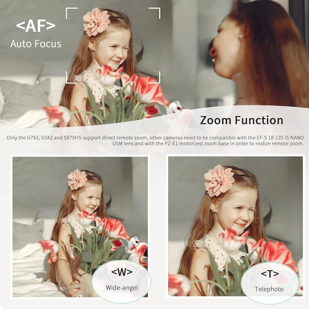 • وظيفة التكبير/التصغير: متوافق مع محول تكبير الطاقة PZ-E1 من Canon للتحكم في التكبير/التصغير عن بعد لعدسة EF-S 18-135mm f/3.5-5.6 IS USM.