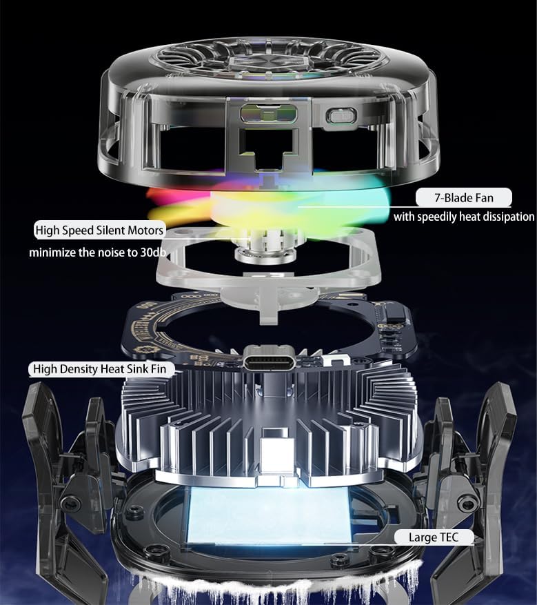 【أداء تبريد فائق】: تصميم مبرد الهاتف للاعبين ومباشري البث المباشر. تعمل تقنية التبريد المتطورة لأشباه الموصلات على تبديد الحرارة بسرعة، وتحمي تجربة اللعب الخاصة بك من الحرارة الزائدة بسبب إعدادات اللعبة الأعلى أو الاستخدام المكثف للأجهزة على المدى الطويل